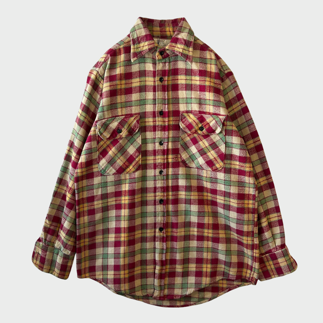 00's VIP フランネルシャツ ワインレッドベージュ (S) /A8819SH-SO