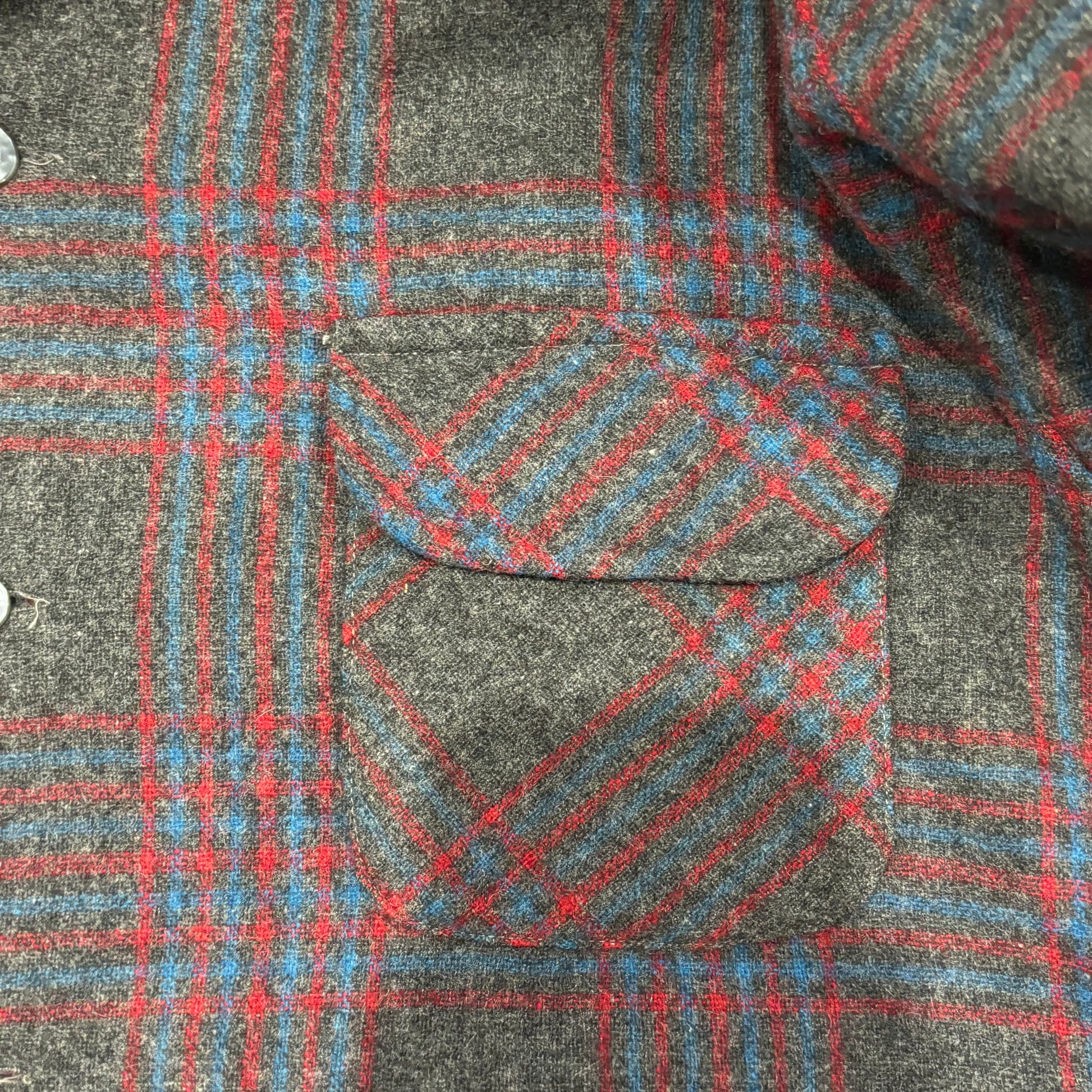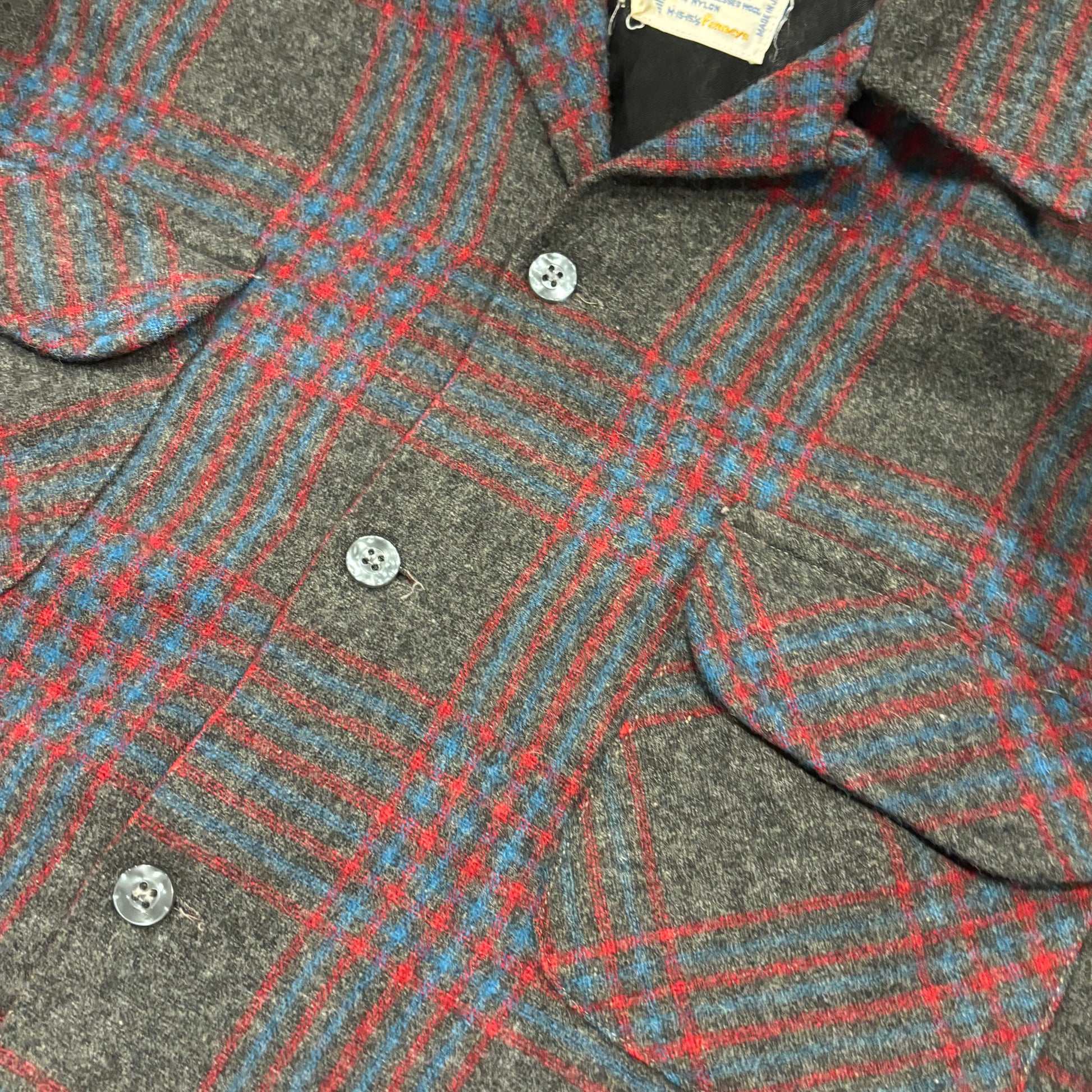 60's Towncraft ウールチェックシャツ 黒赤青 (M)/A8293S-SO