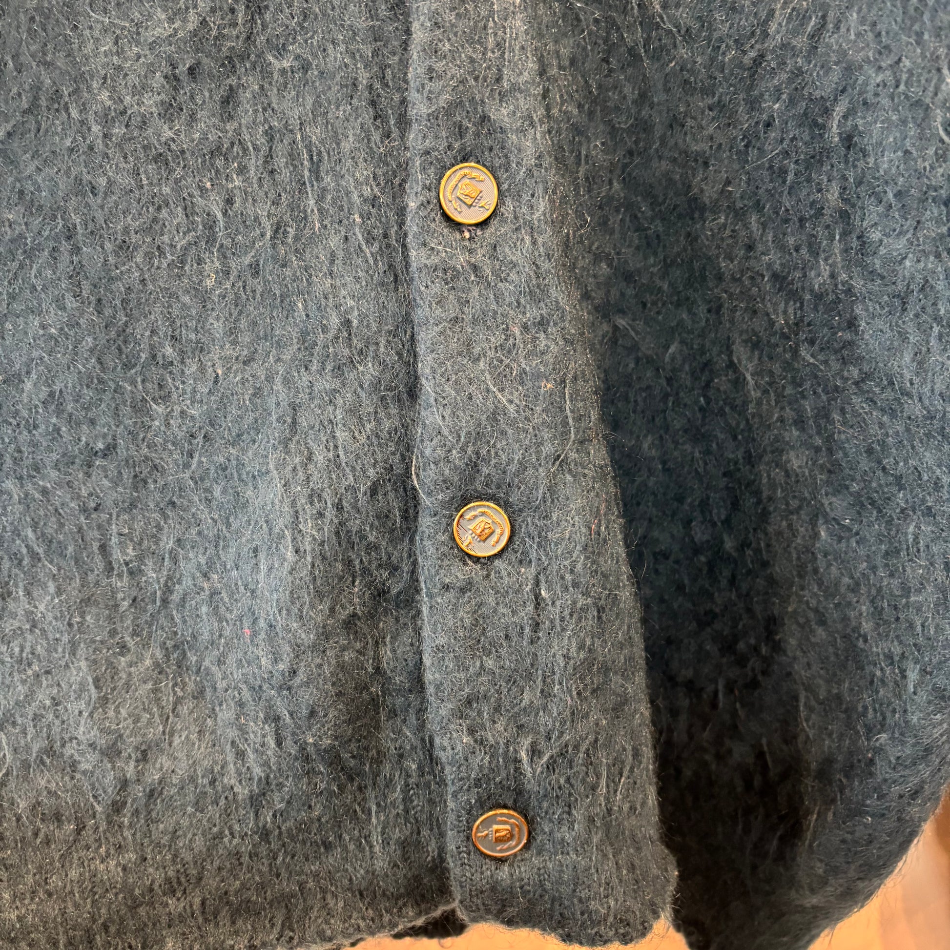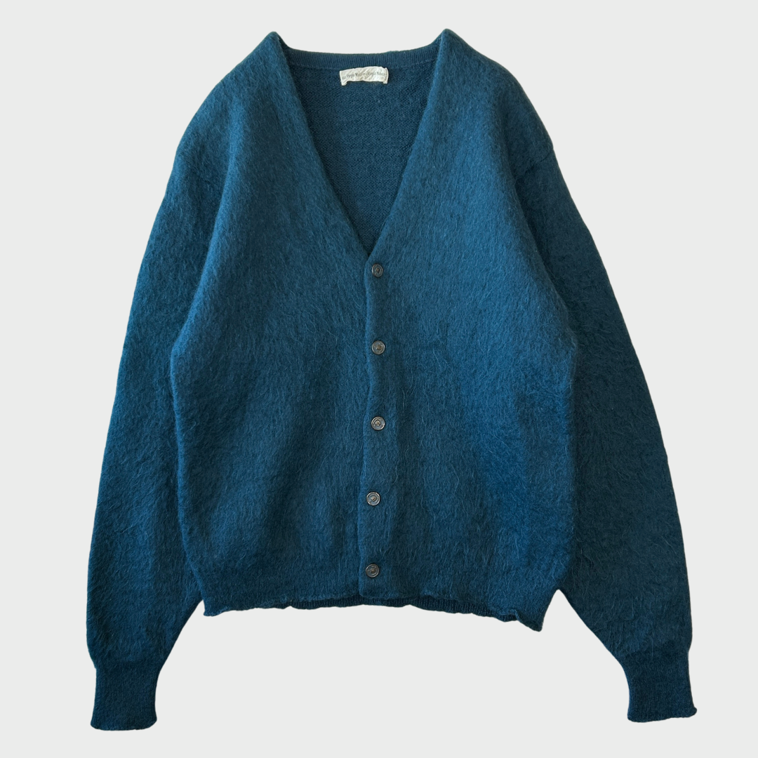 60's Unknown モヘアカーディガン エンブレムメタルボタン ブルー系 (M)/A9225K-SO