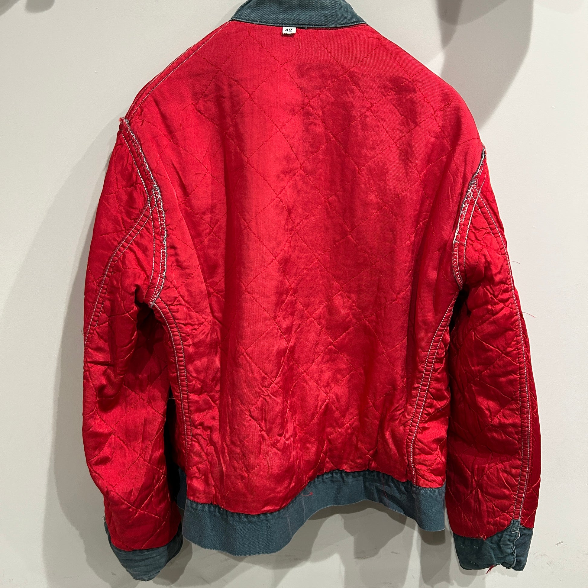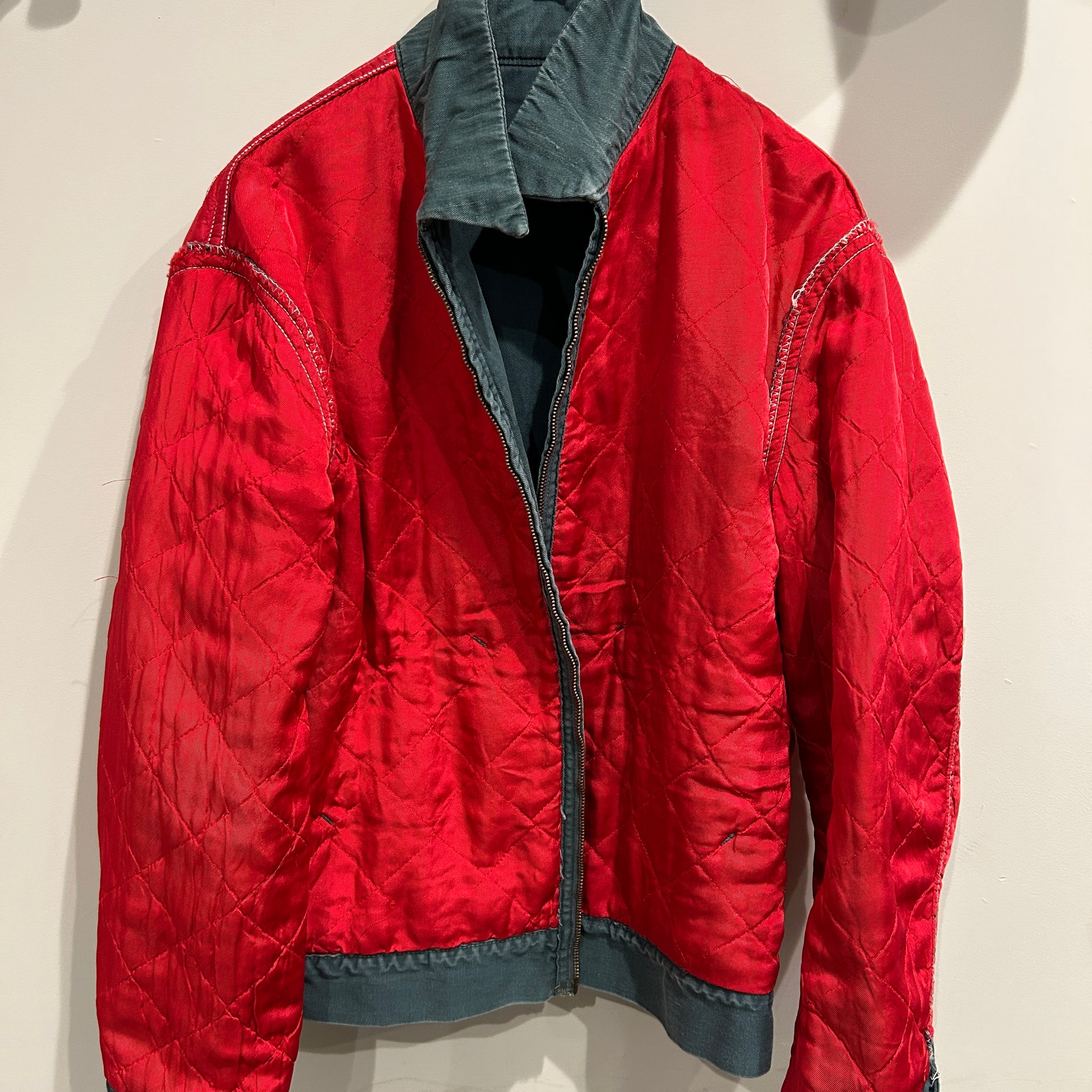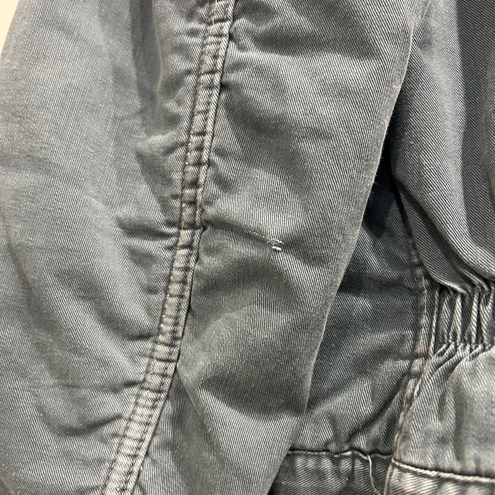 [状態特記]全体的に使用感・色褪せあり、背面の両脇付近に穴開きあり、袖に擦れや小さな穴開き有り、裏地キルティングのステッチ解れ有り