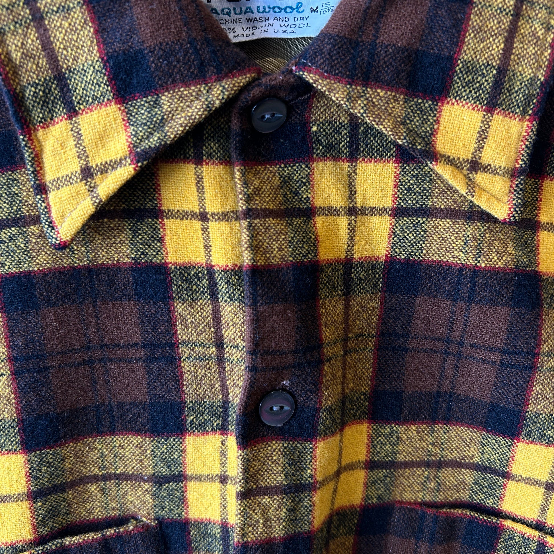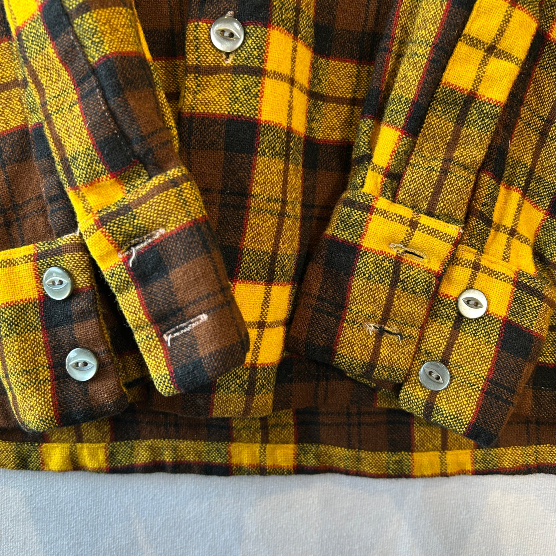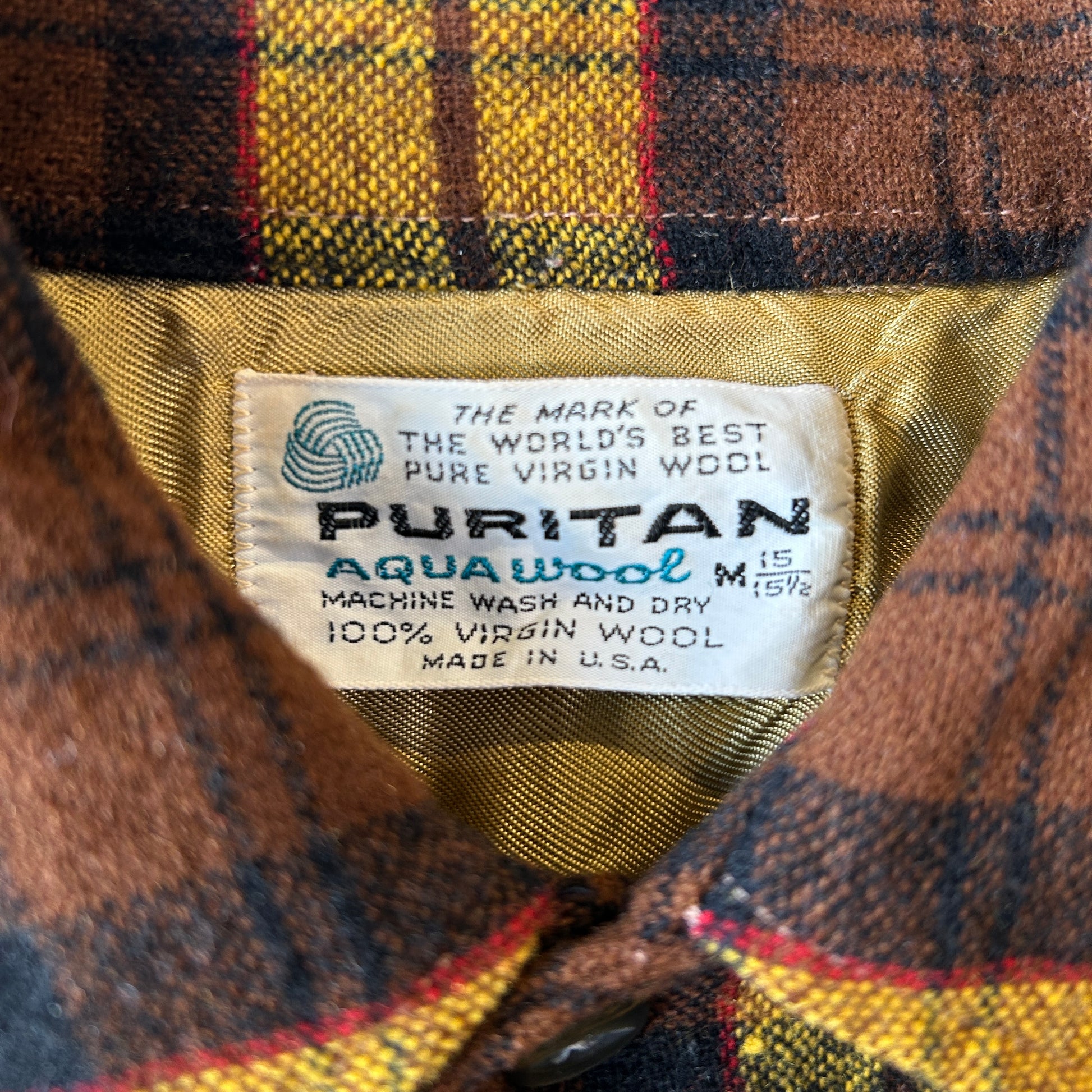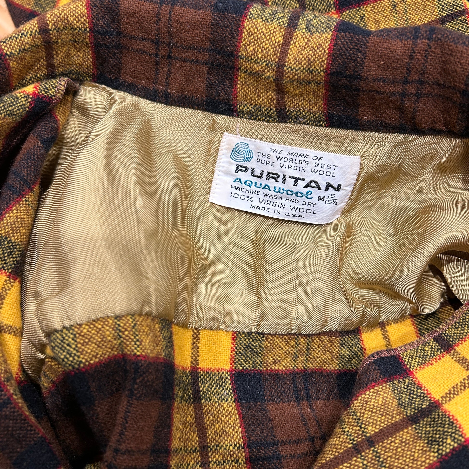 70's PURITAN ウールチェックシャツ イエロー/ブラウン (M)/A9771SH-SO