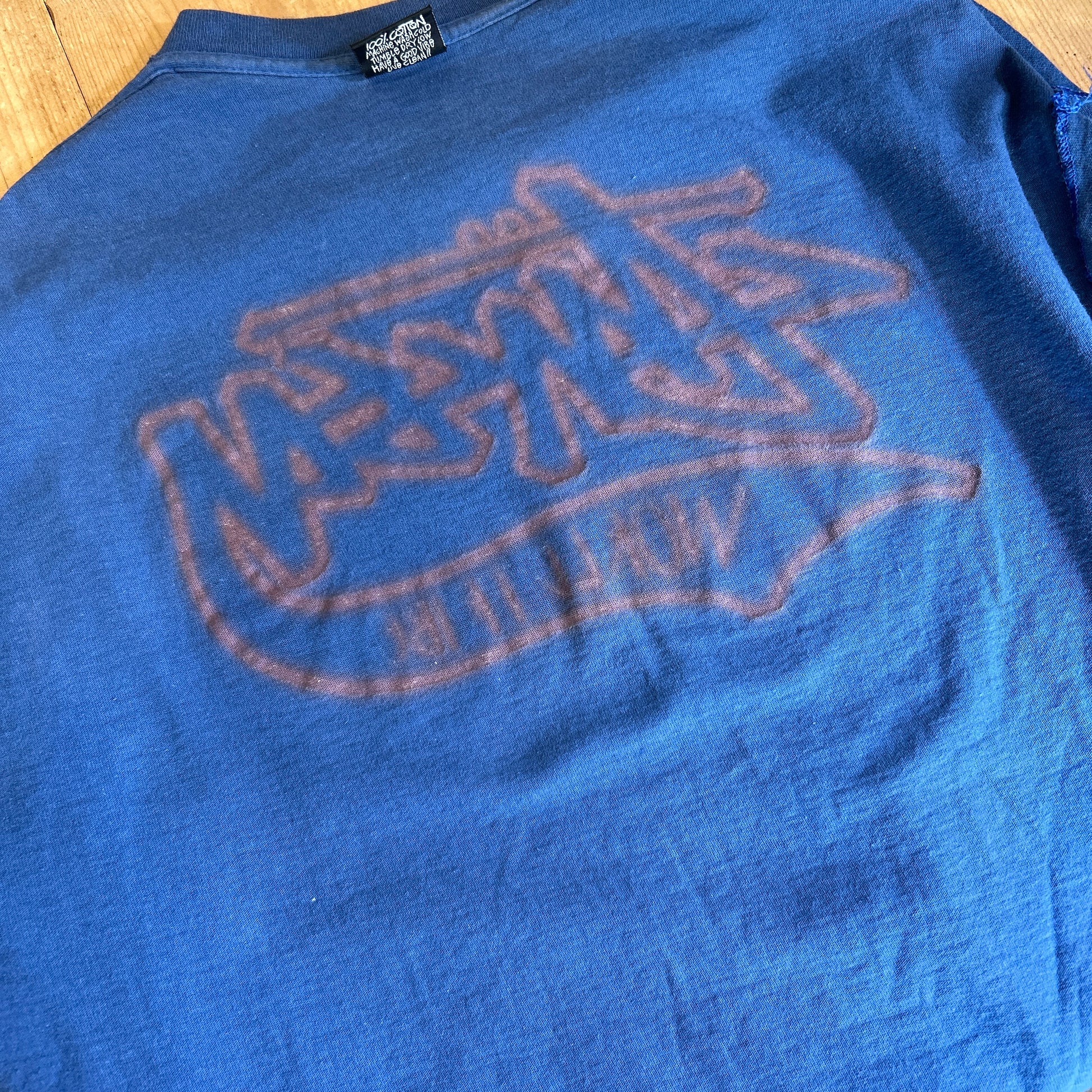 80's Old Stussy ステューシー World Tribe ロゴロンT ブルー 長袖 (L)/C0507T-SO