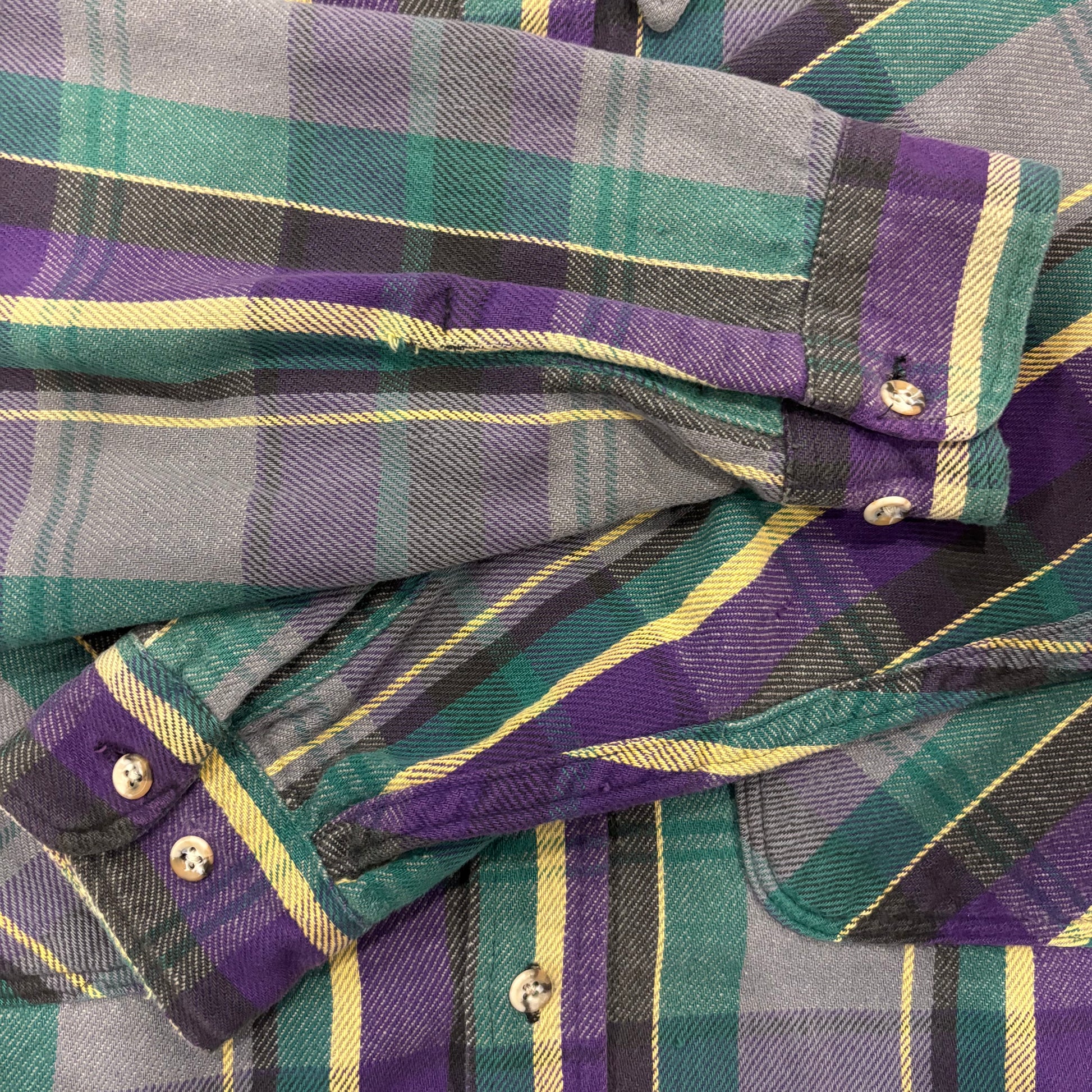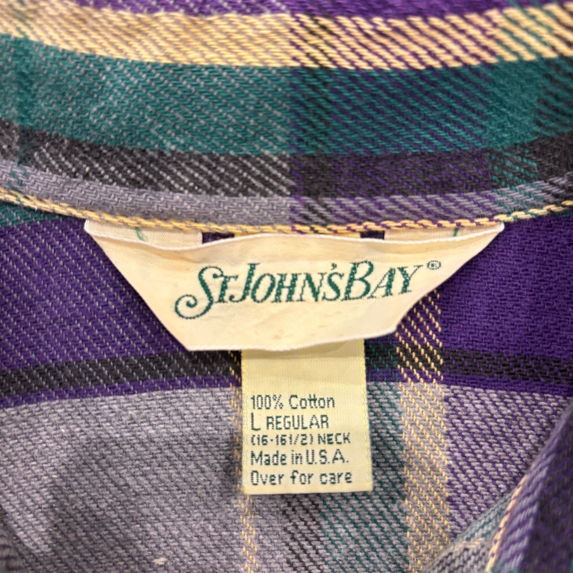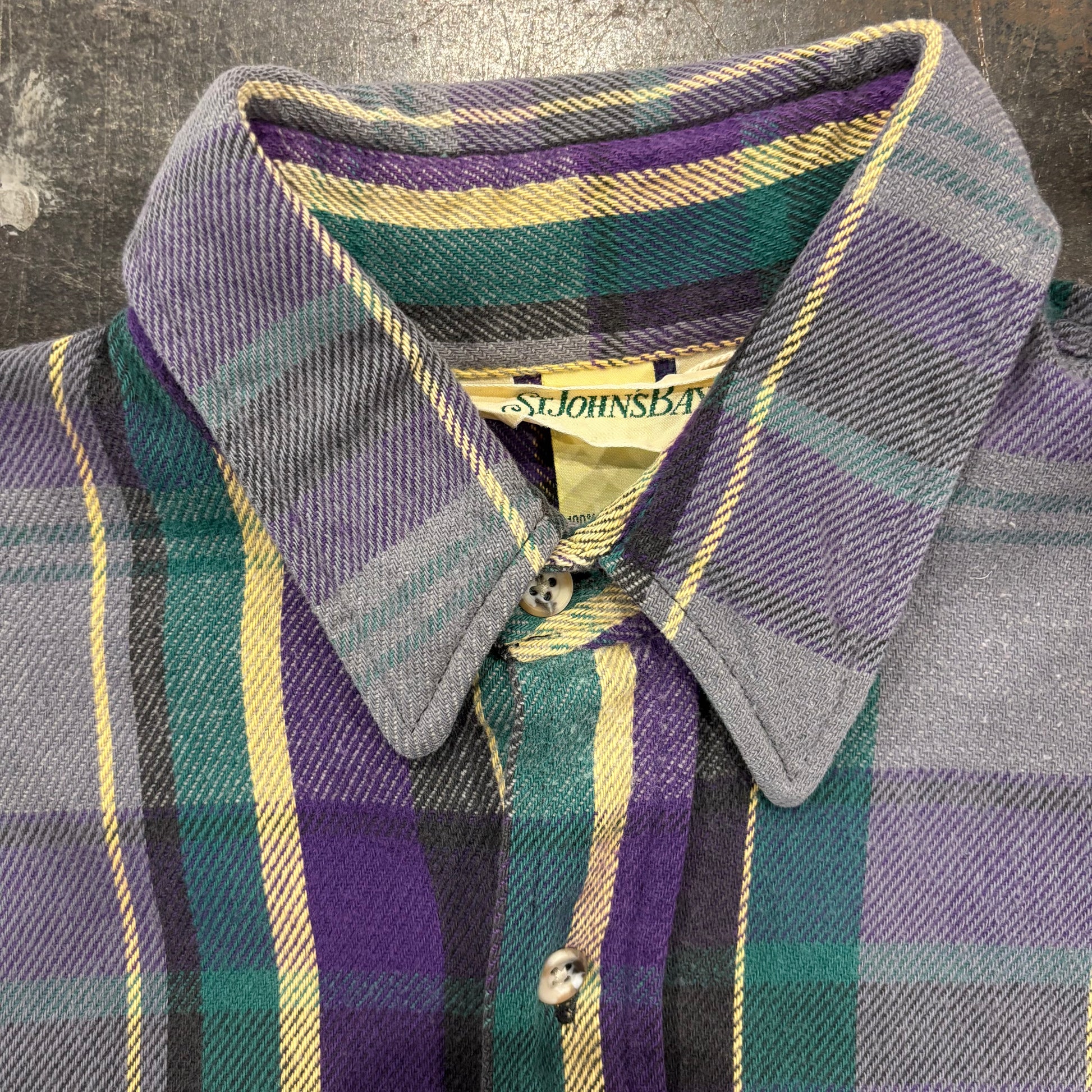80's STJOHN'S BAY USA製 タータンチェック ネルシャツ 緑 紫 (L) /A8504SH-SO