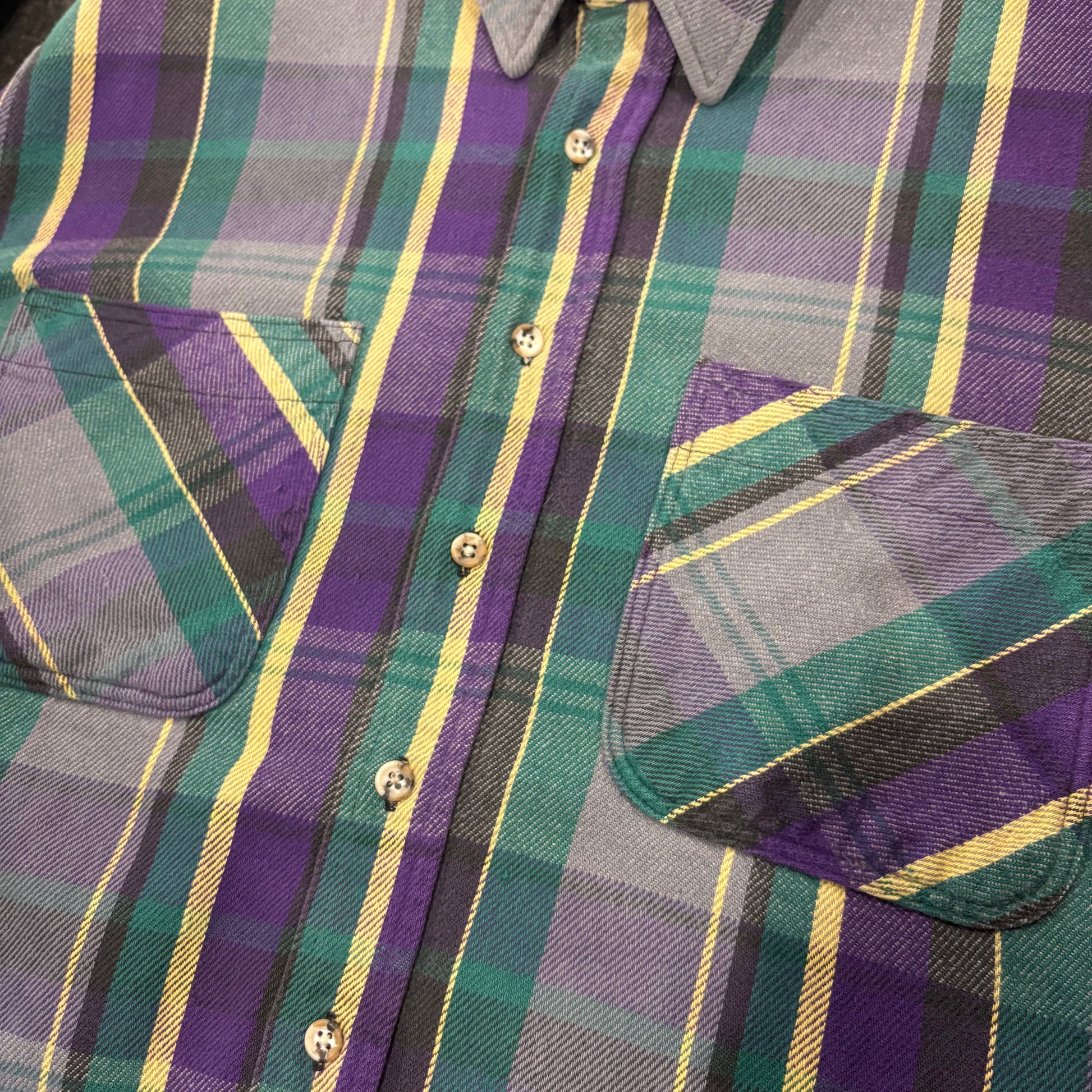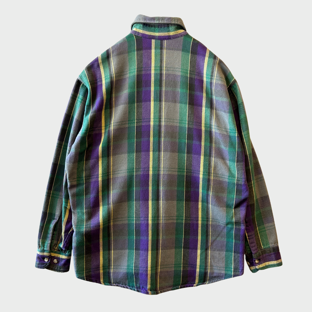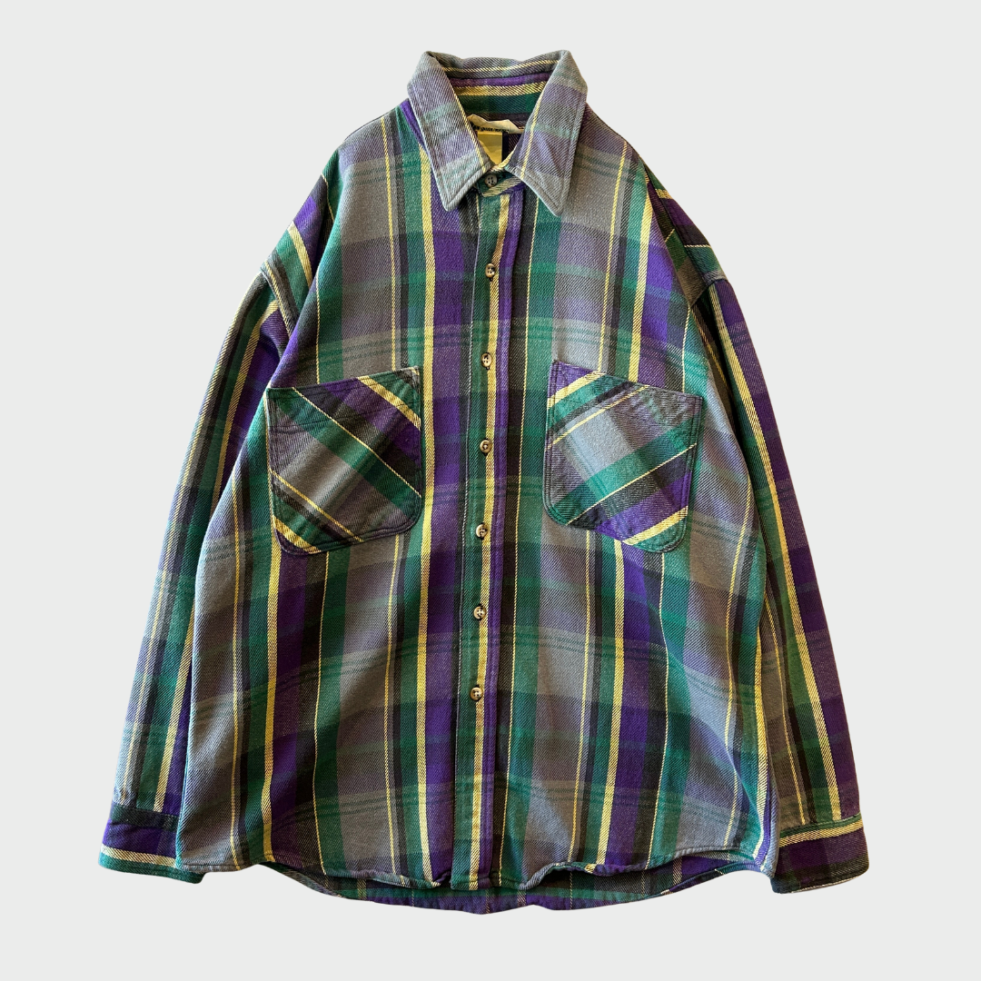 80's STJOHN'S BAY USA製 タータンチェック ネルシャツ 緑 紫 (L) /A8504SH-SO