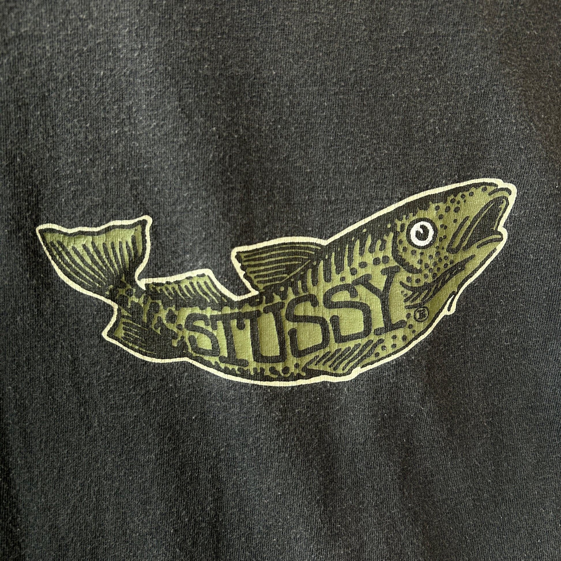 80's Stussy ステューシー Don't Take The Bite... 魚 Tシャツ ブラック (L)/C0434T-SO