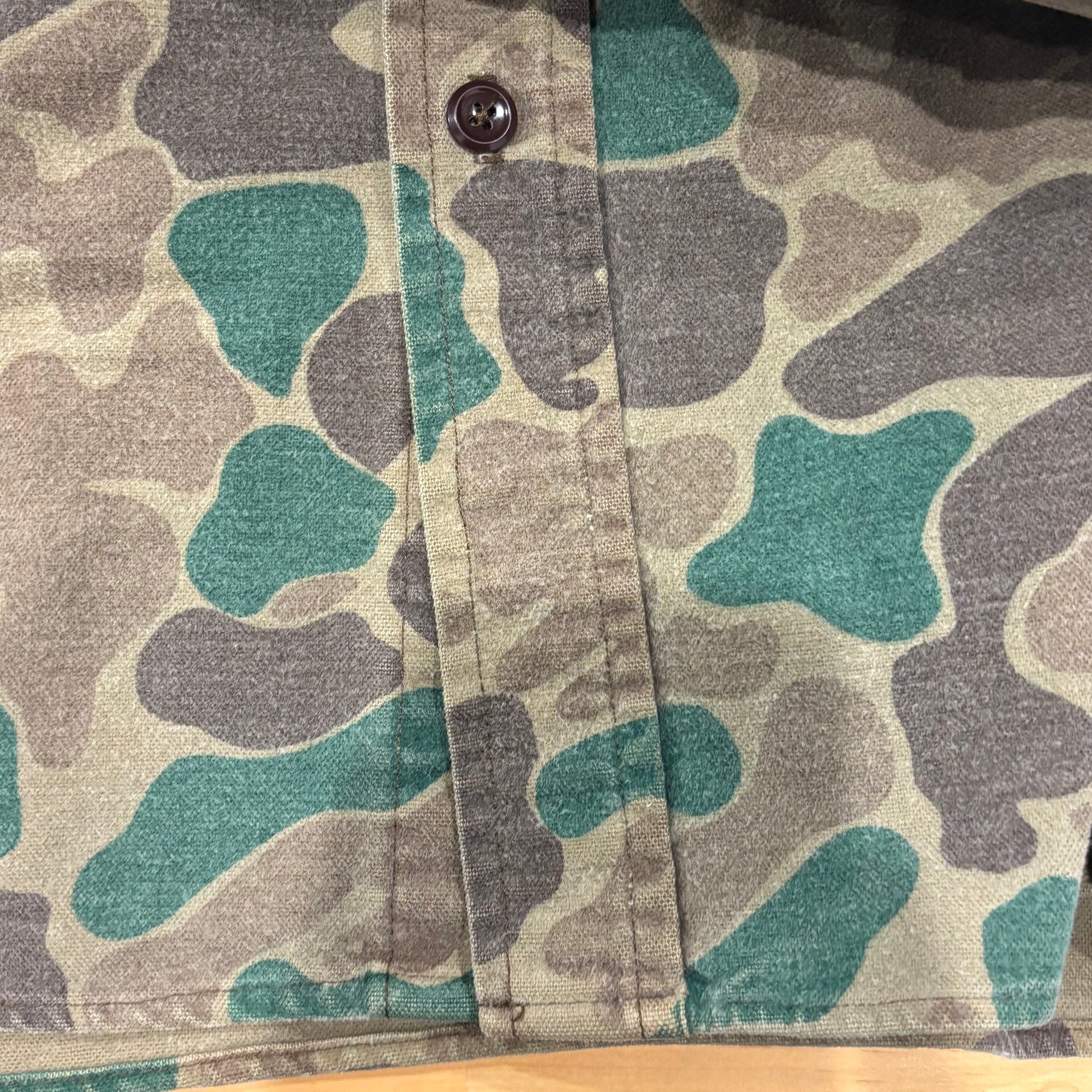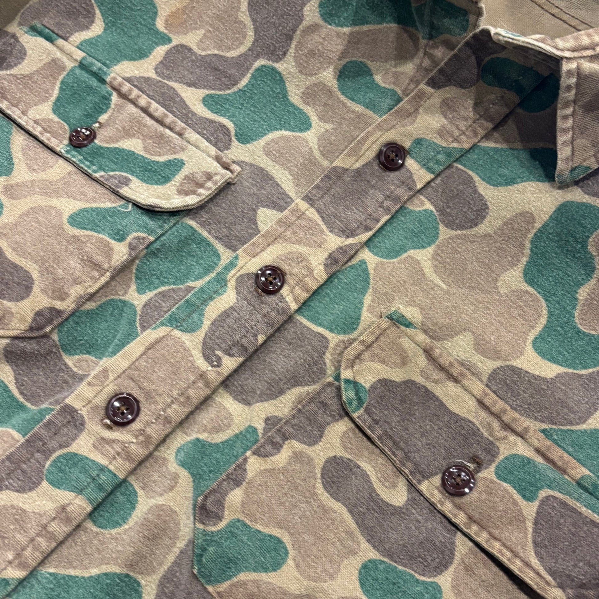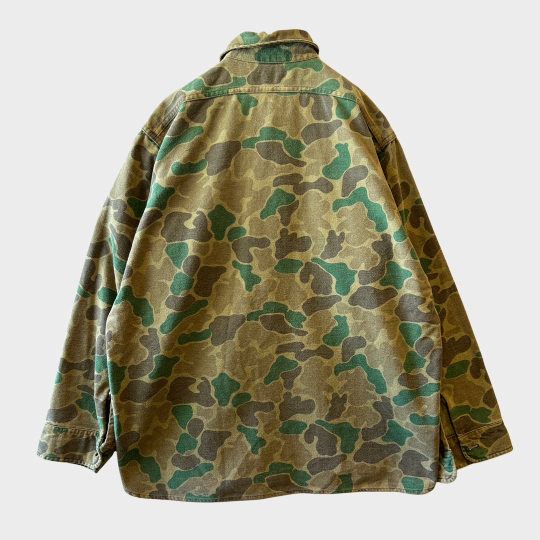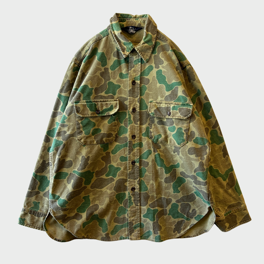 80's Wool Rich ダックハンターカモ コットンシャツ 茶緑黄土 (L)/A9002S-SO