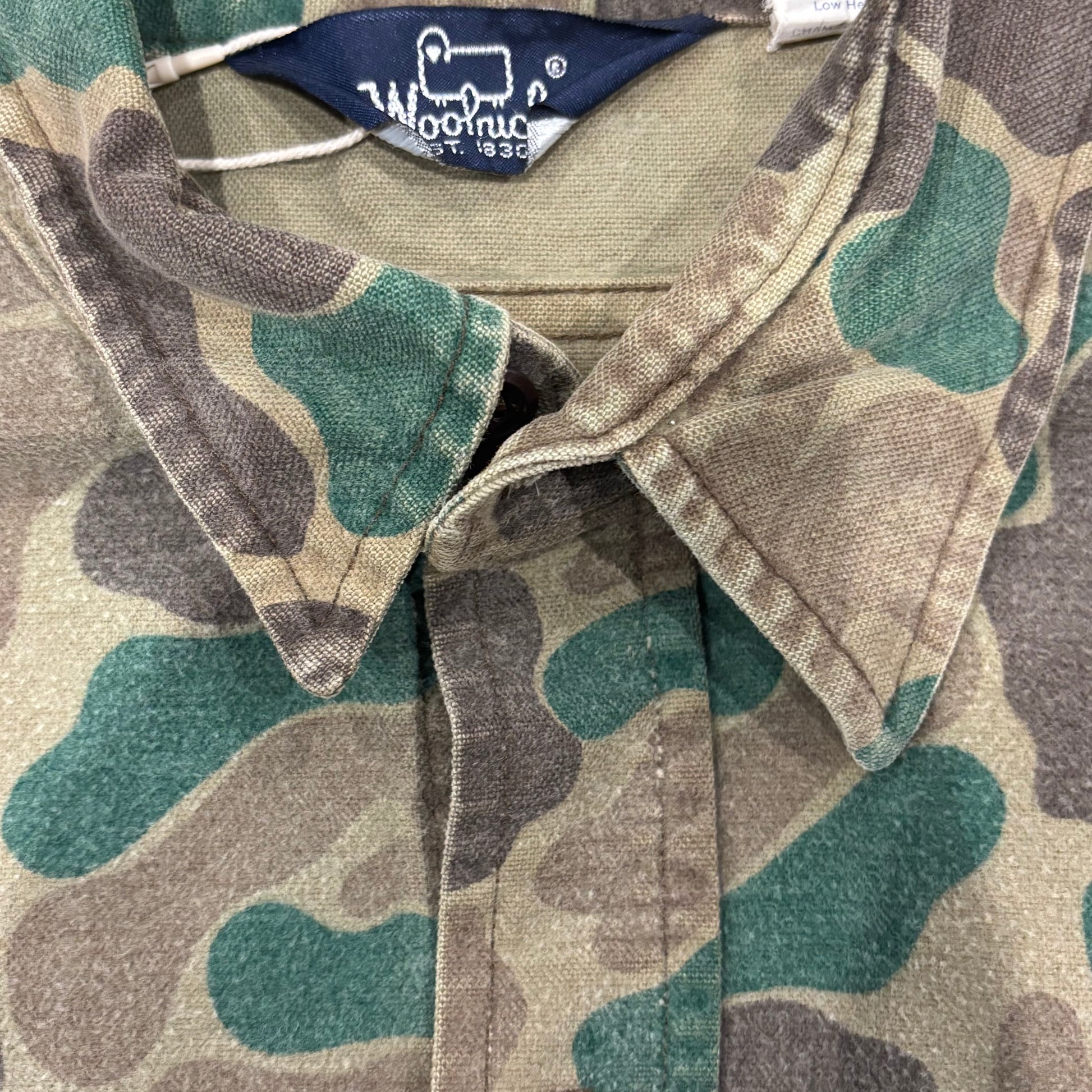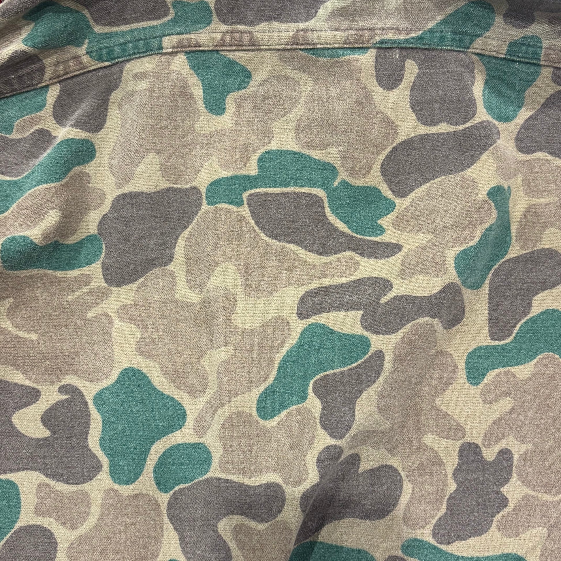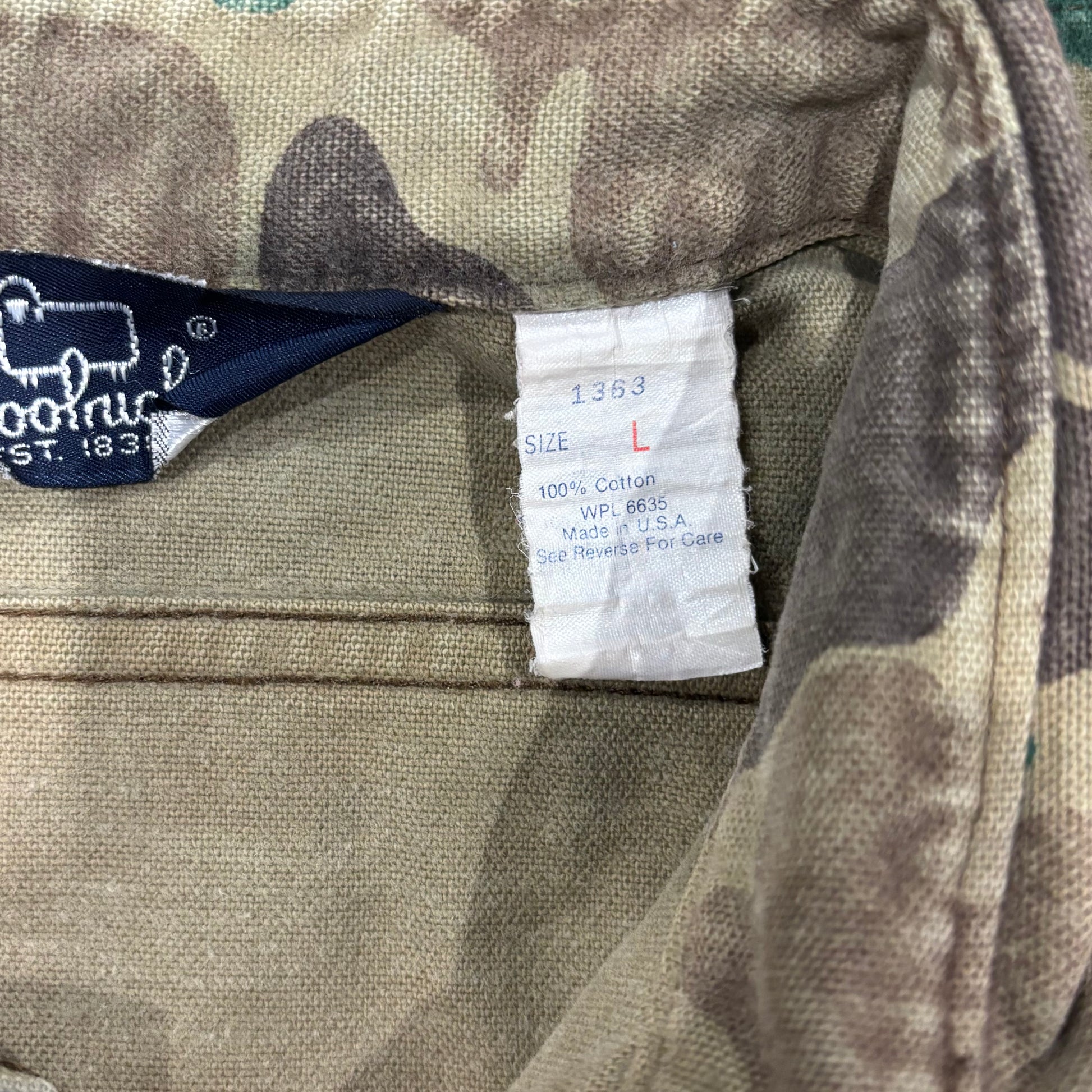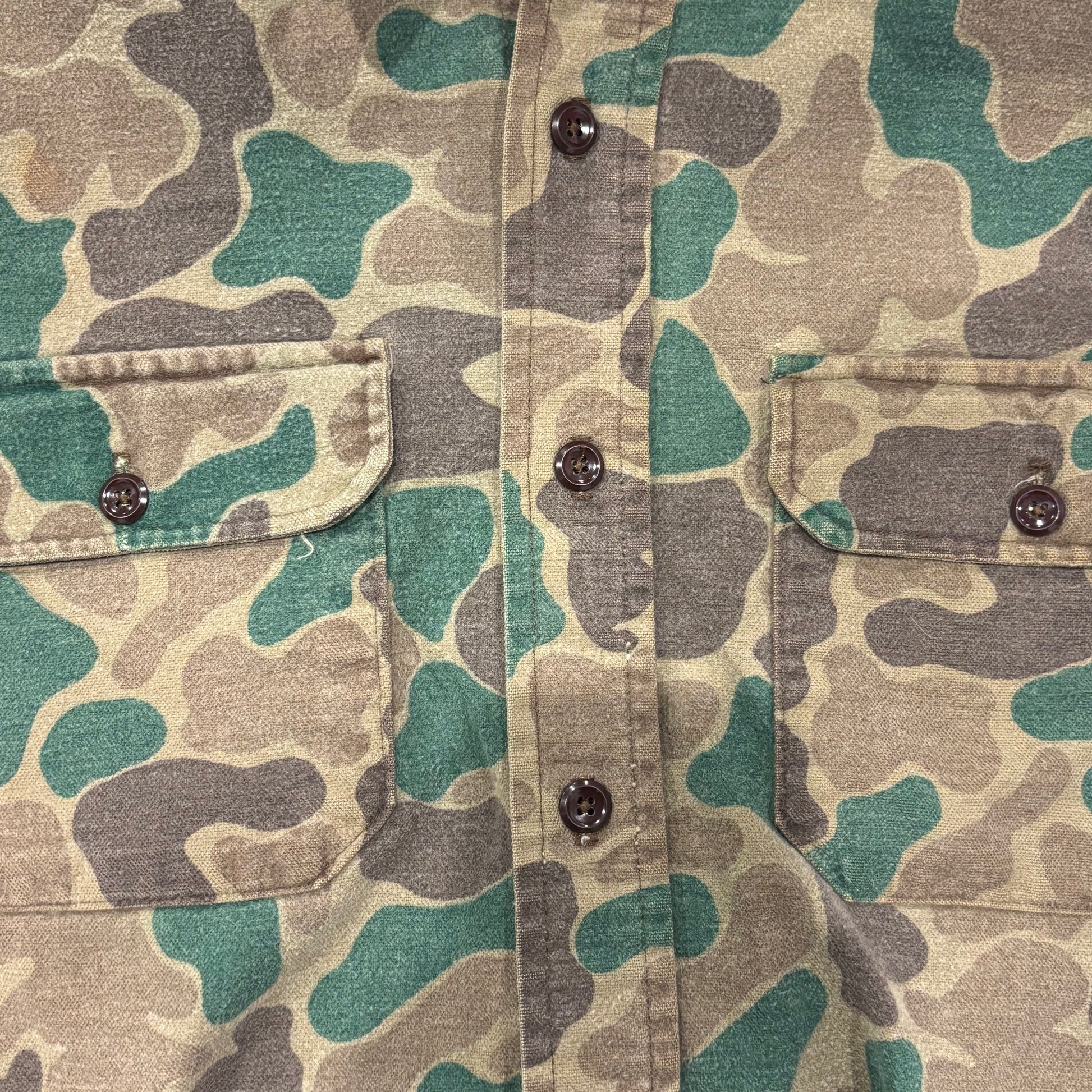 80's Wool Rich ダックハンターカモ コットンシャツ 茶緑黄土 (L)/A9002S-SO