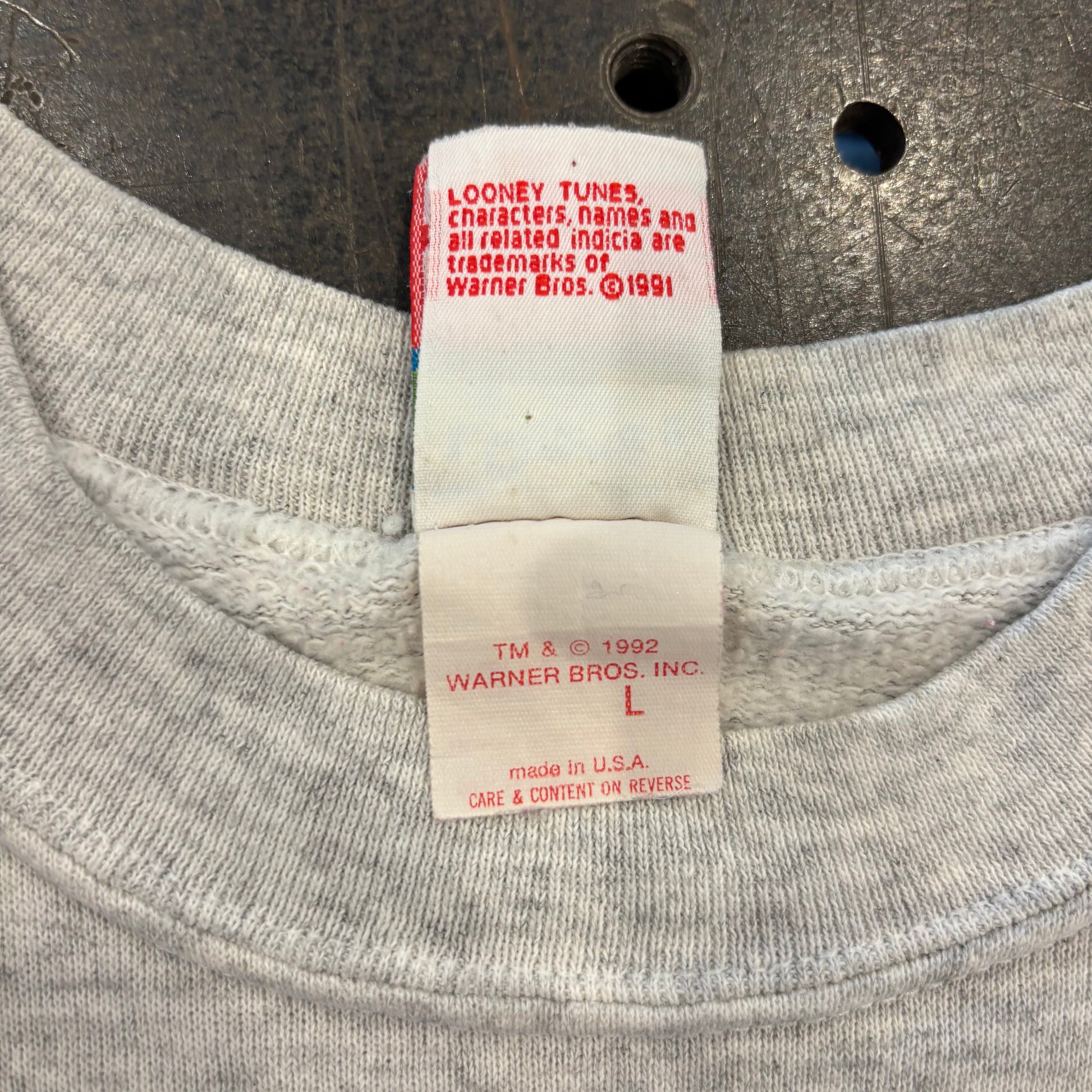 90's SIX FLAGS ルーニーテューンズ プリント スウェット グレー L /B1579S-SO