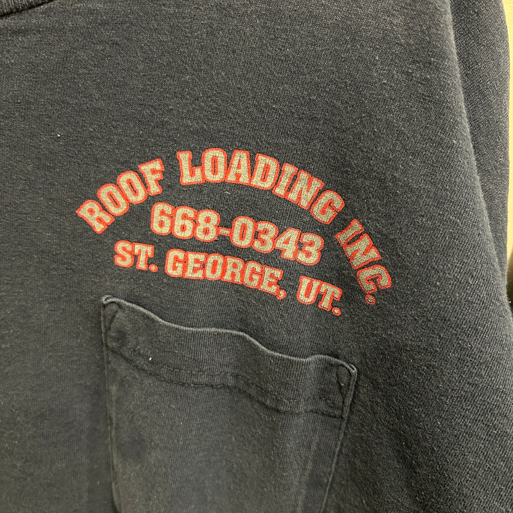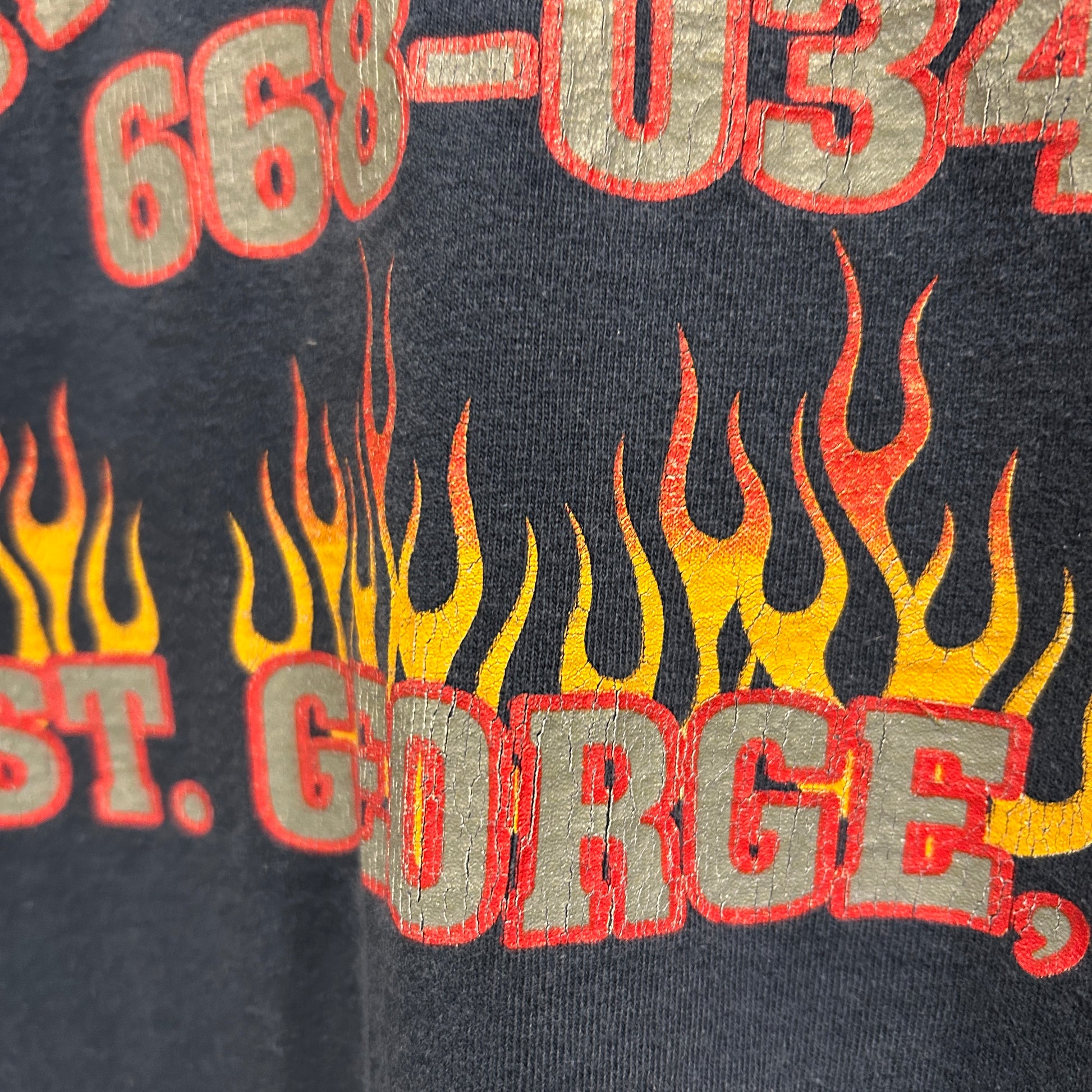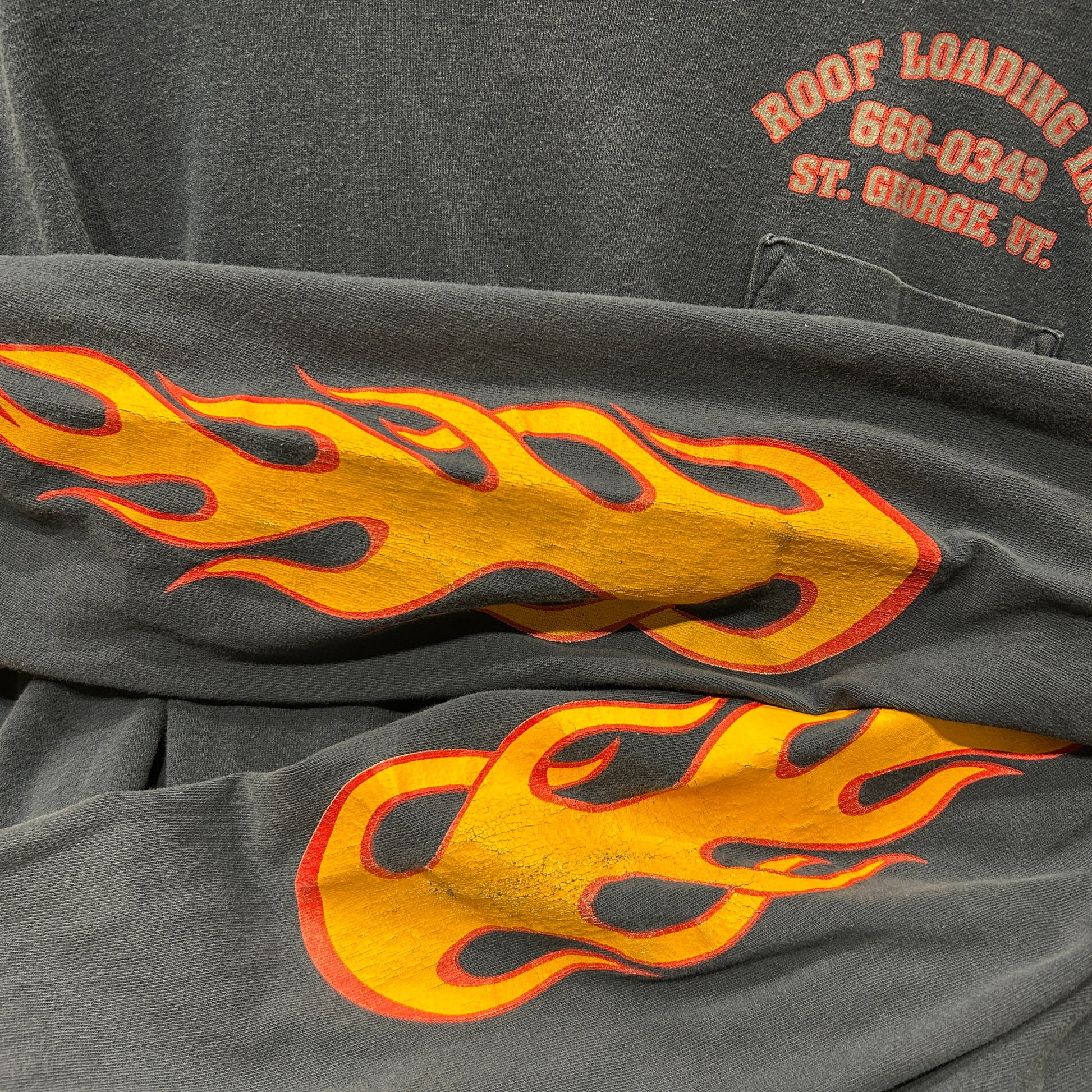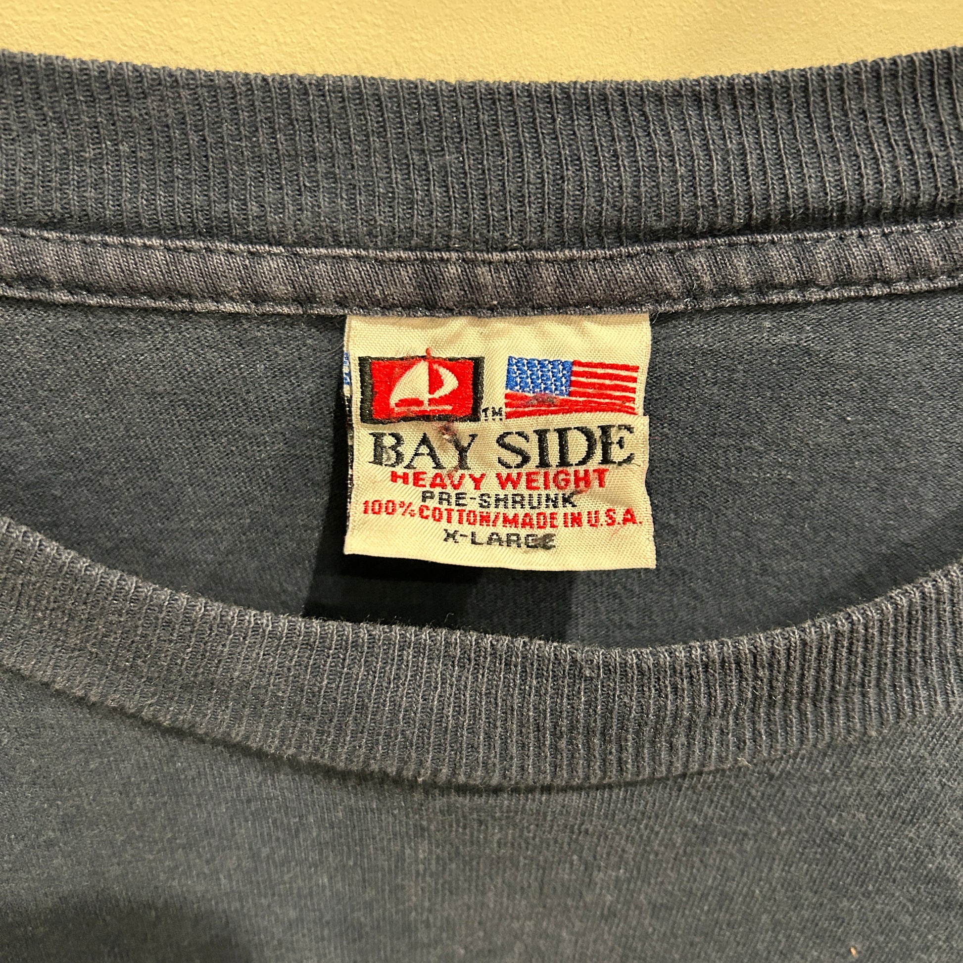 90's BAY SIDE 袖フレイムプリント ロンT USA製 ネイビー(XL)/A7027T-SO