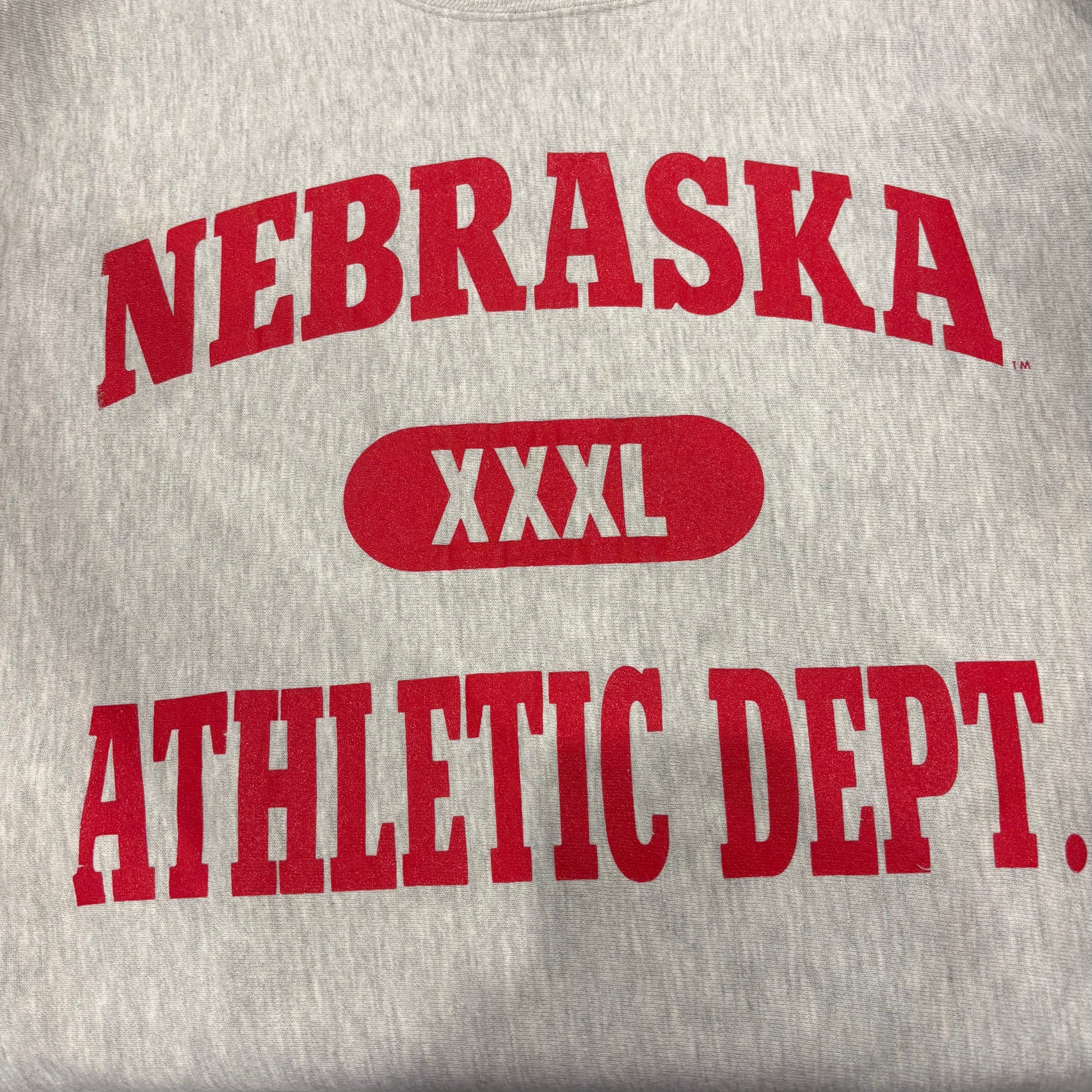 90's Campion REVERSE WEAVE リバースウィーブ NEBRASKA ATHLETIC DEPT. アッシュグレー XXXL /A1412S-SO