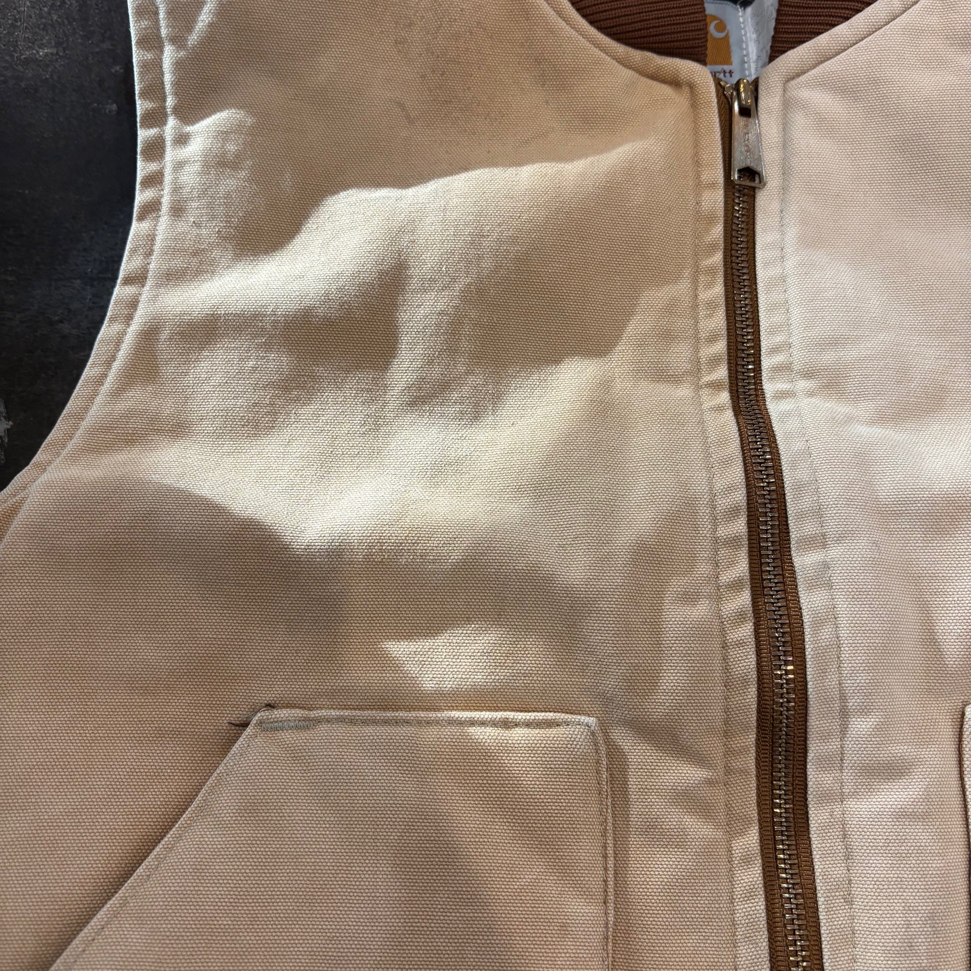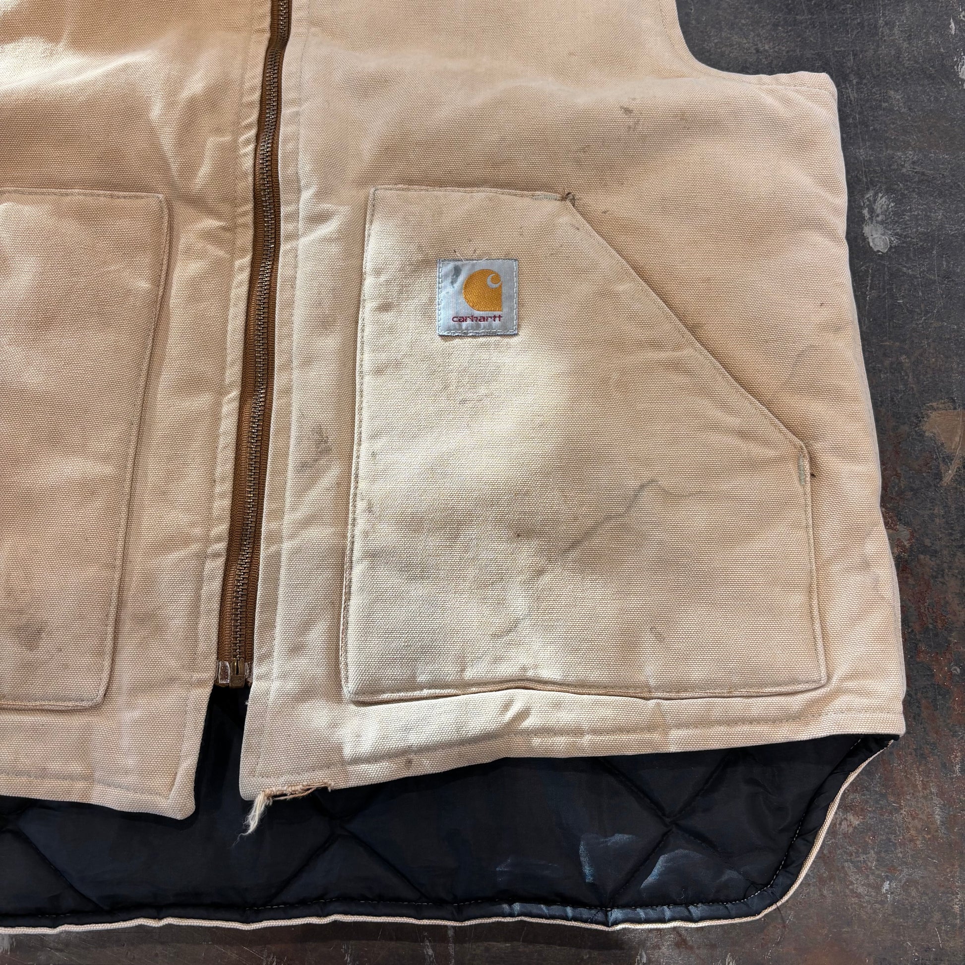 90's Carhartt work vest ダック ワーク ベスト 腰ゴム ベージュ(L)/A6707V-SO
