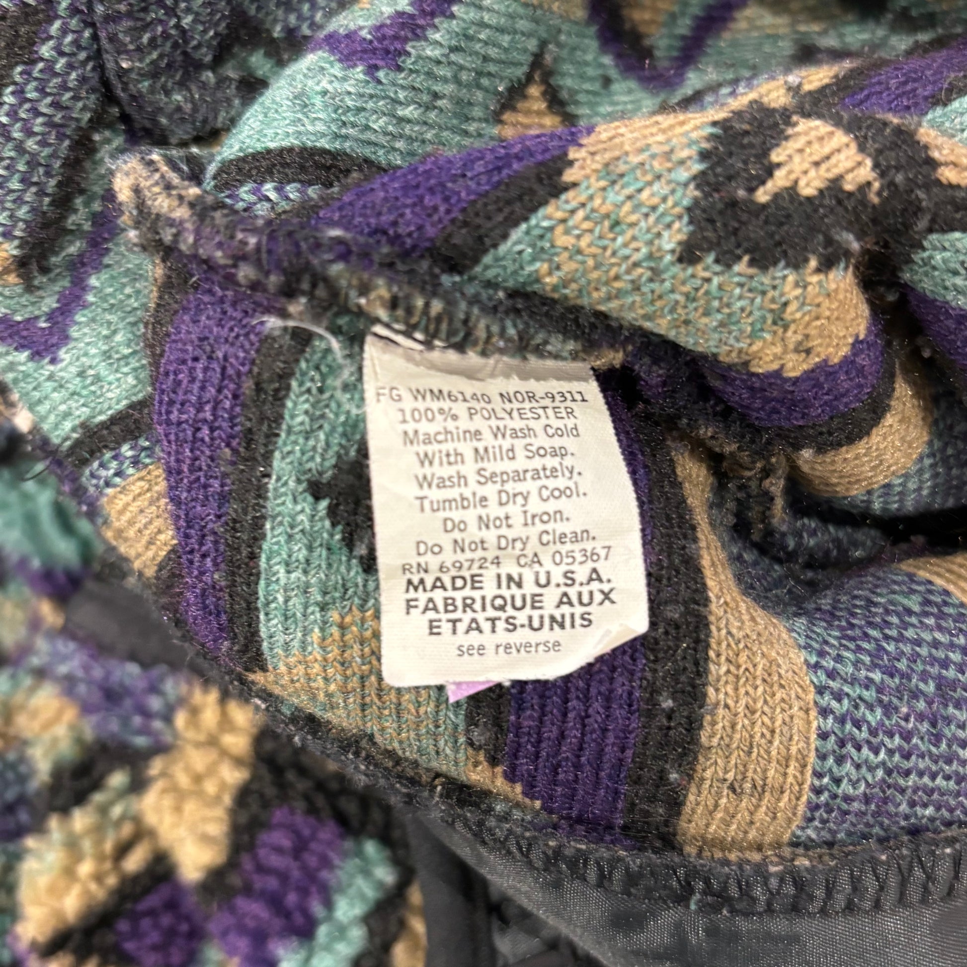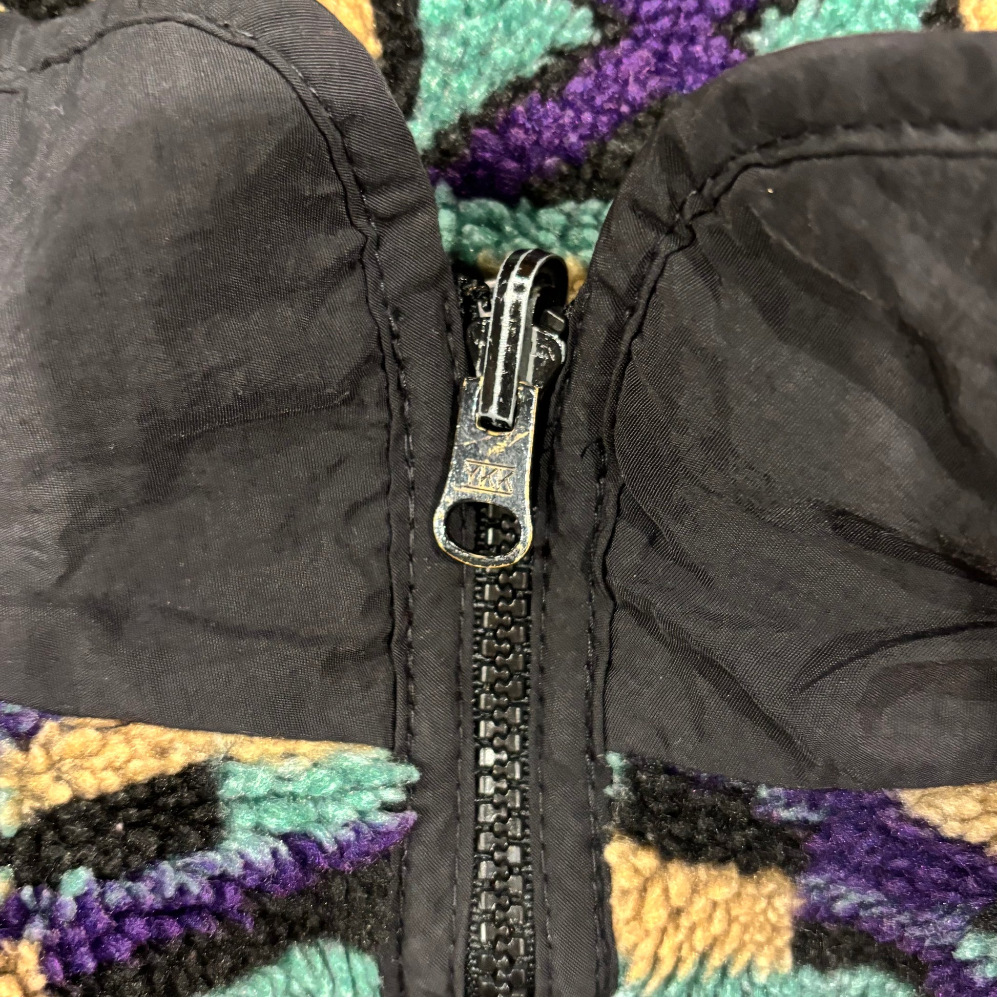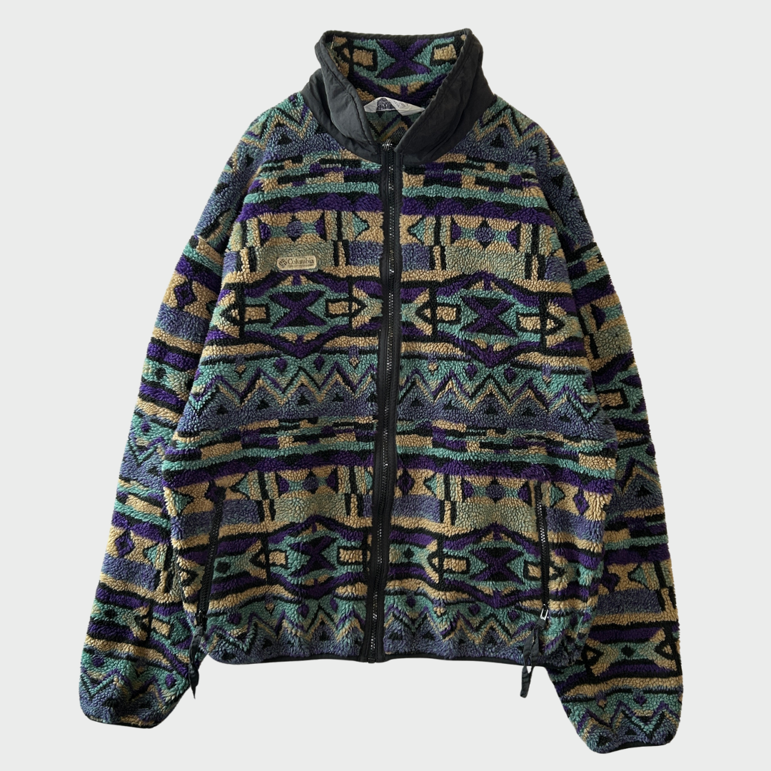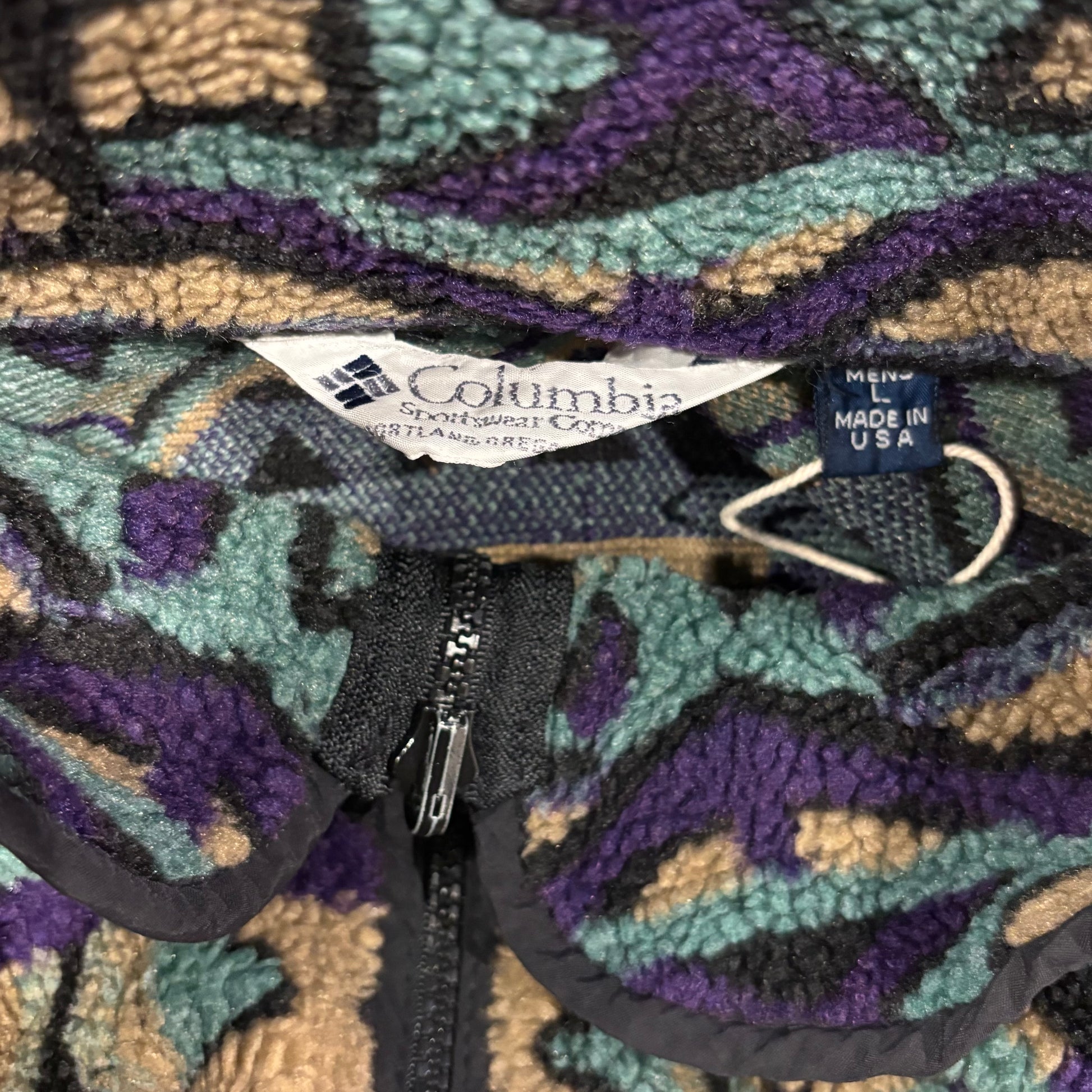 90's Colombia フリース デザインボアジャケット 黒緑紫茶 (L)/B3089J-SO
