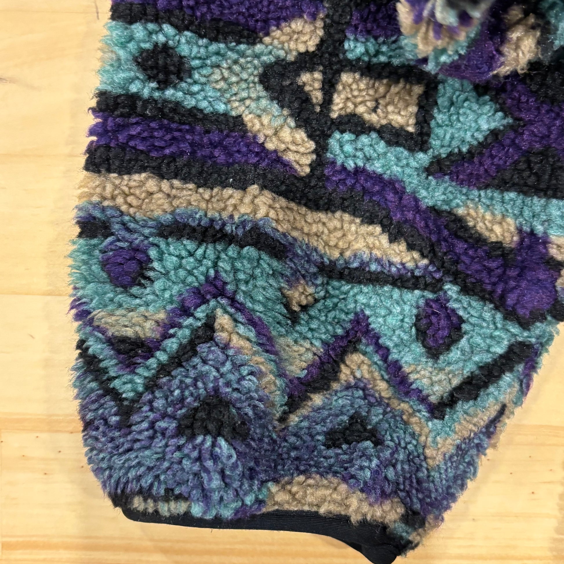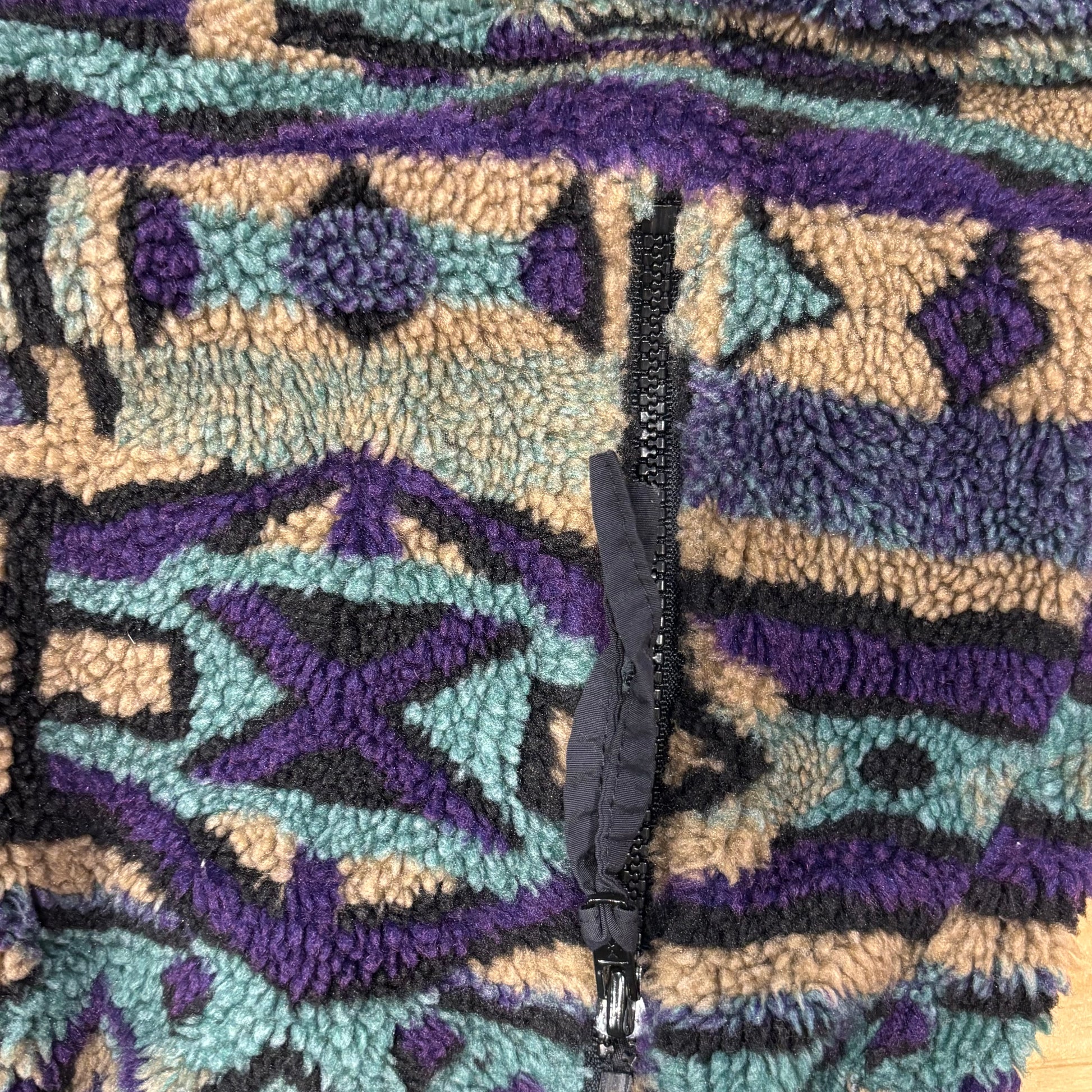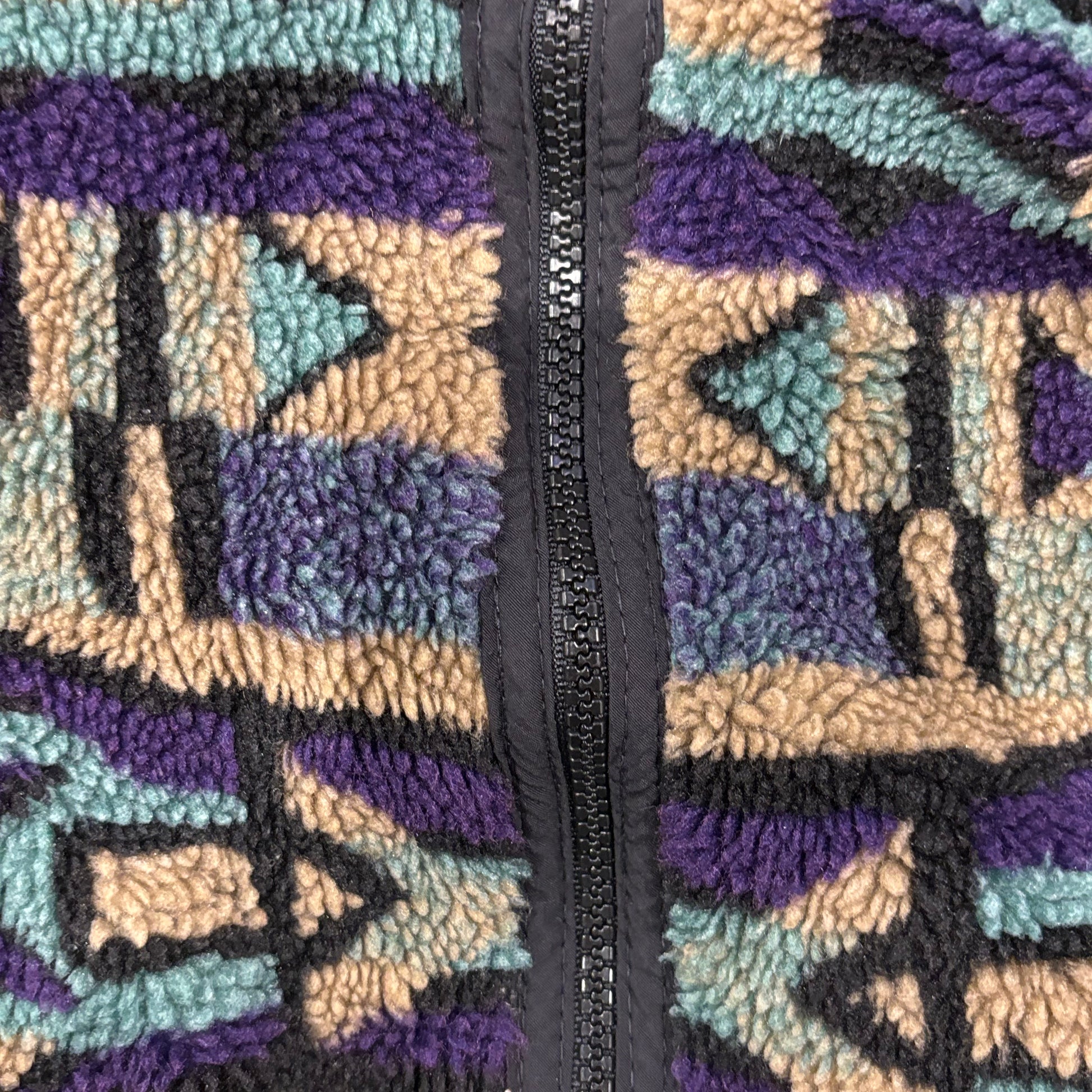90's Colombia フリース デザインボアジャケット 黒緑紫茶 (L)/B3089J-SO