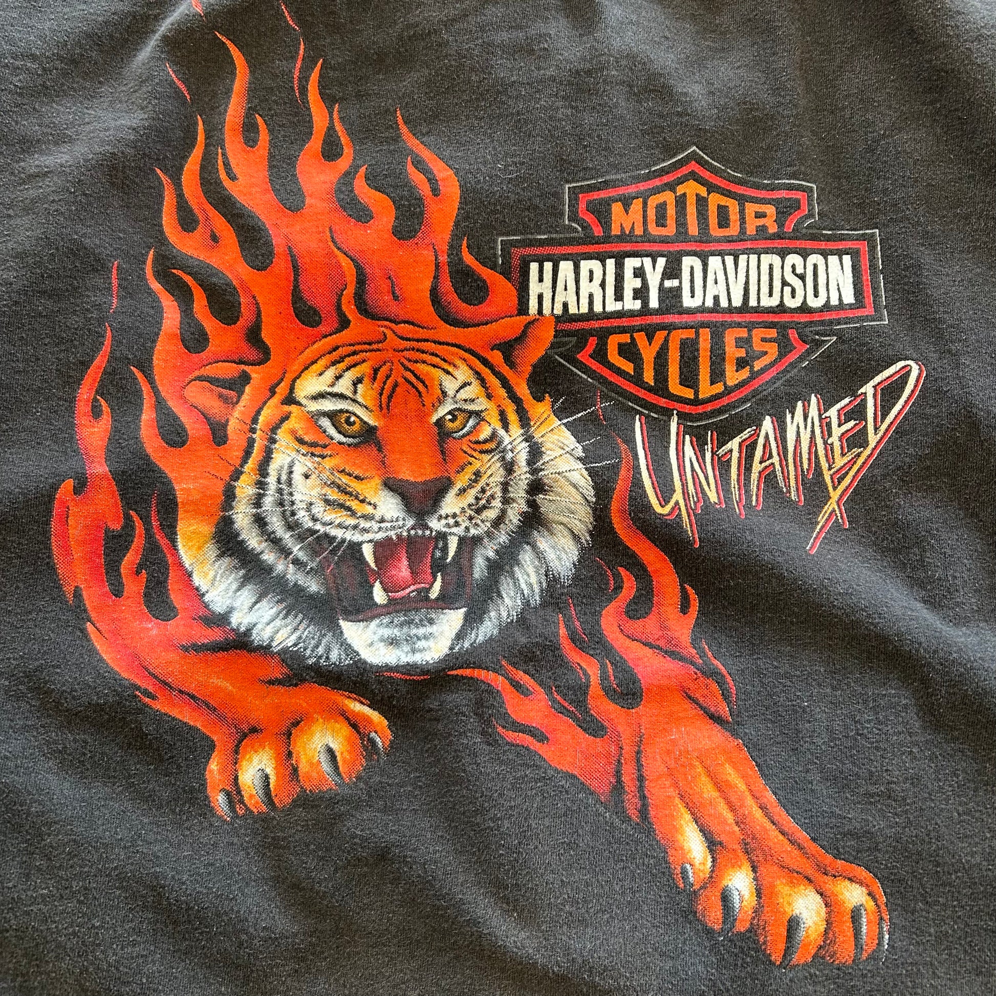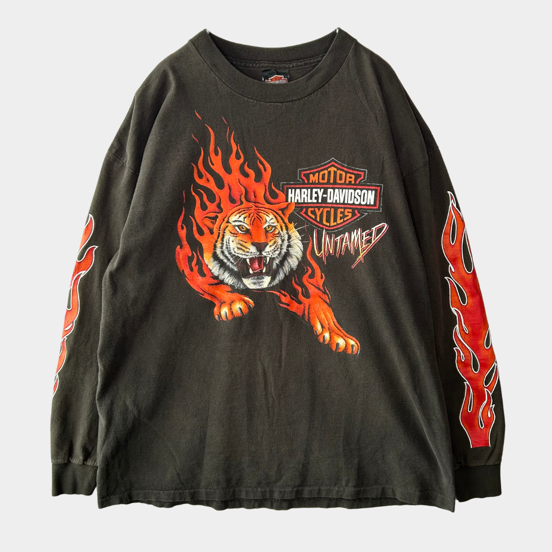 90's Harley-Davidson タイガー フレイムプリントロンT 黒(XL)/A7104T-SO