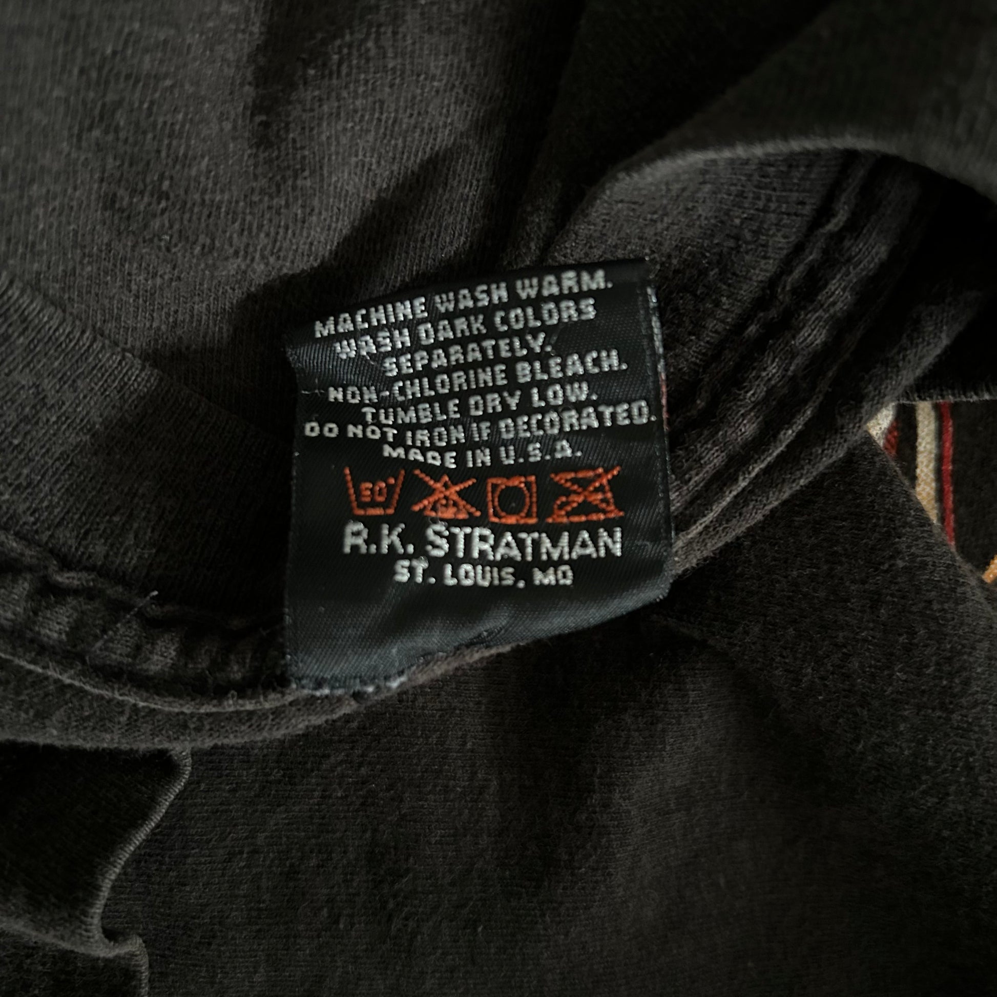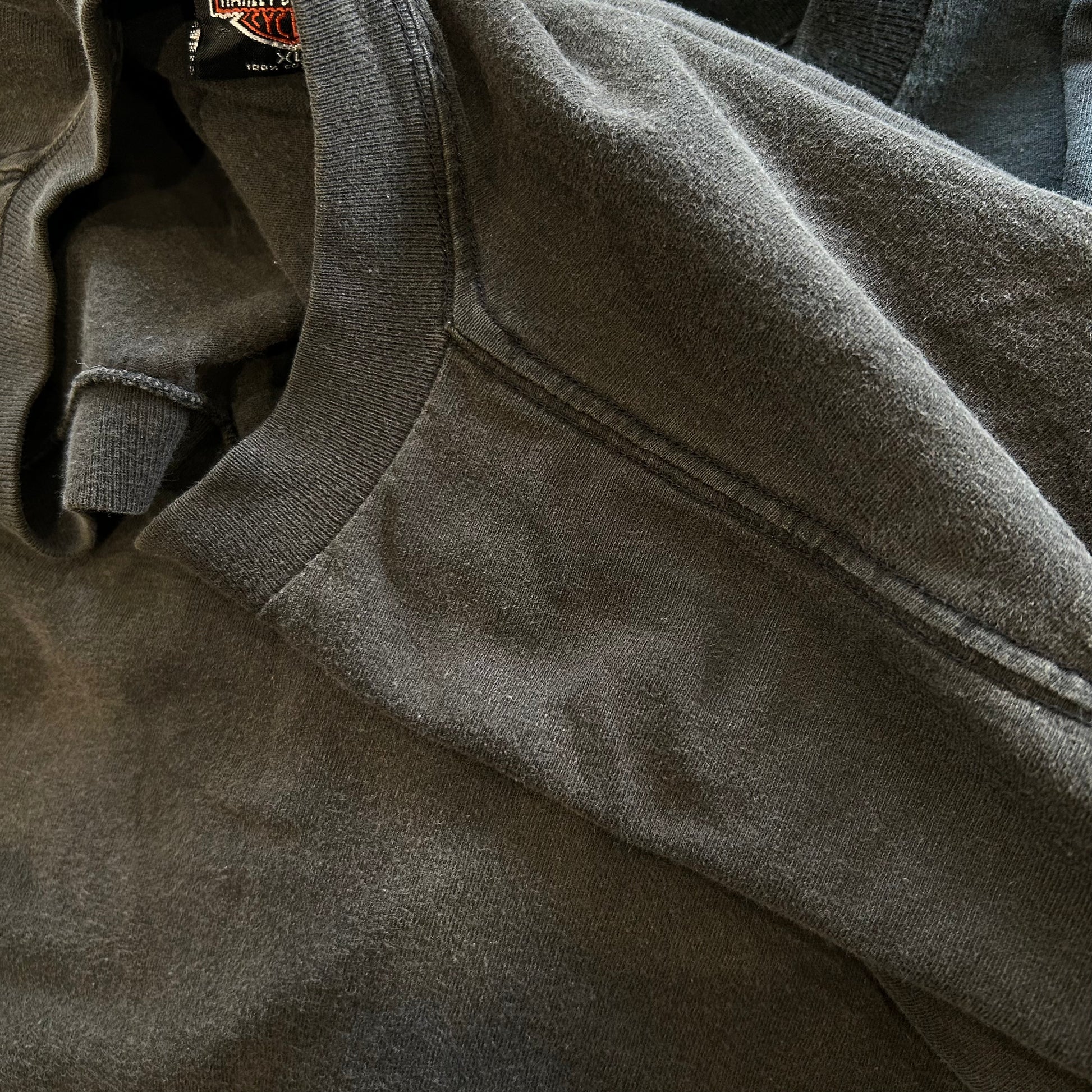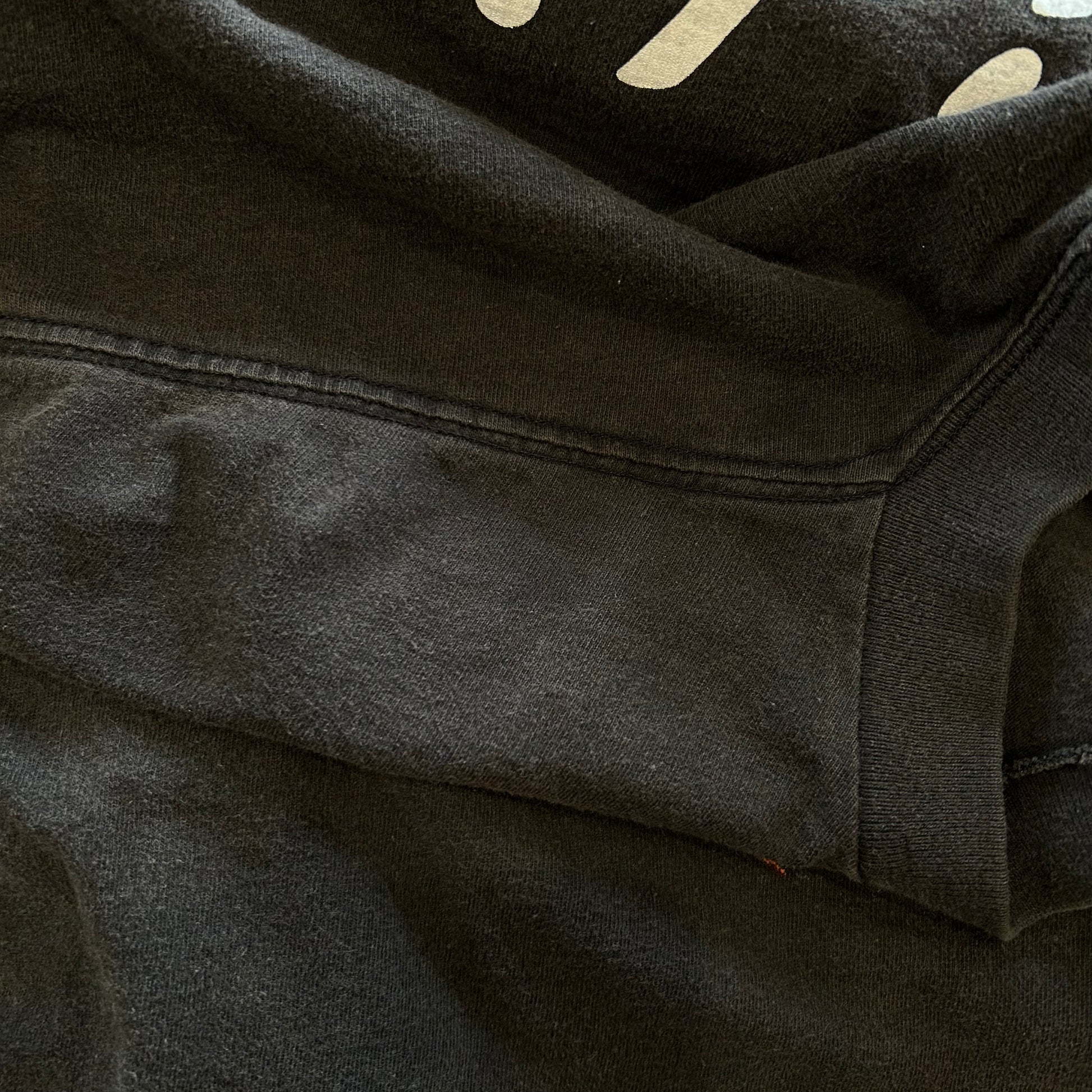 [状態特記]全体的に使用感あり、フェード感あり、タグ一部ほつれ有り、背面プリント右下にピンホールあり、プリントに割れあり、右袖リブに汚れあり