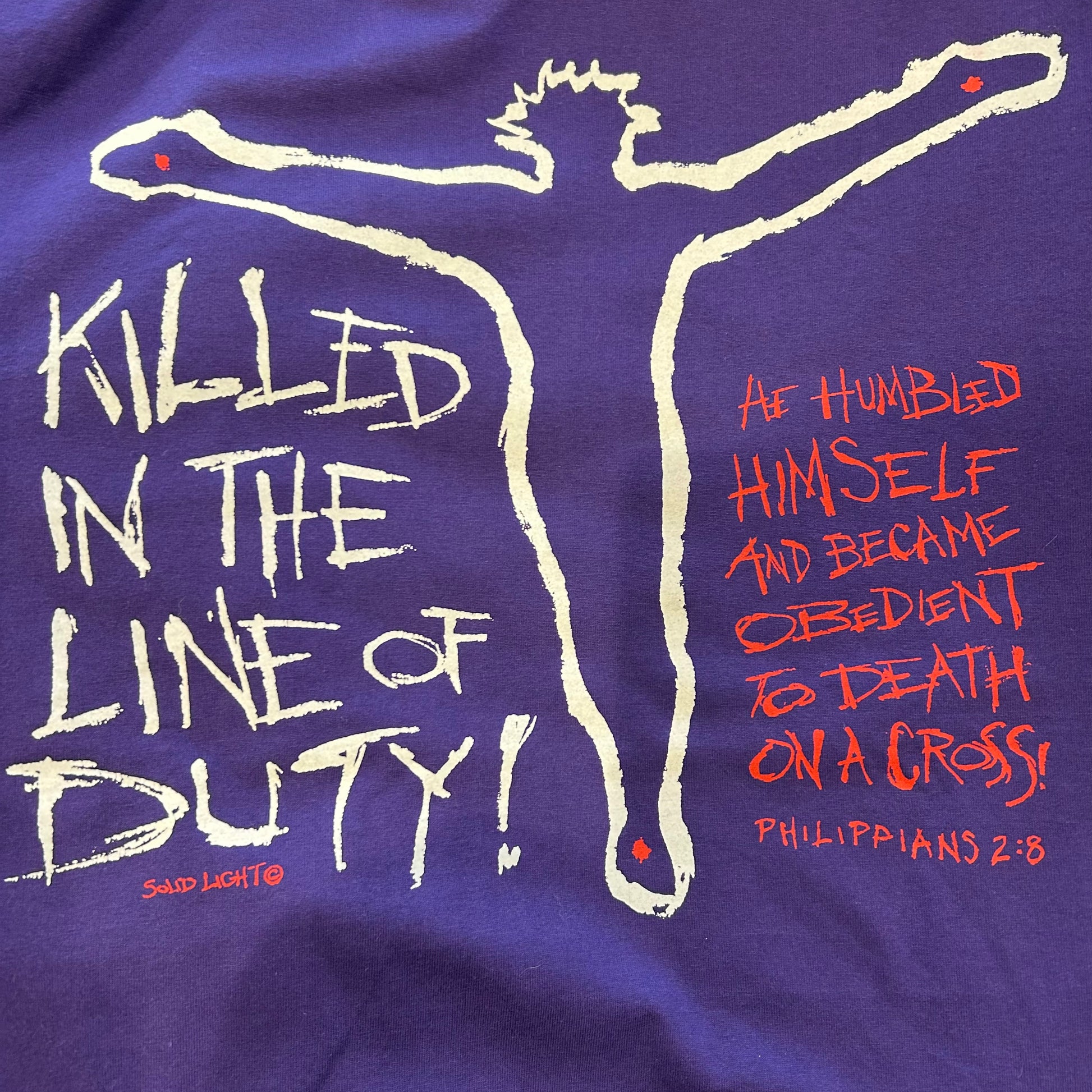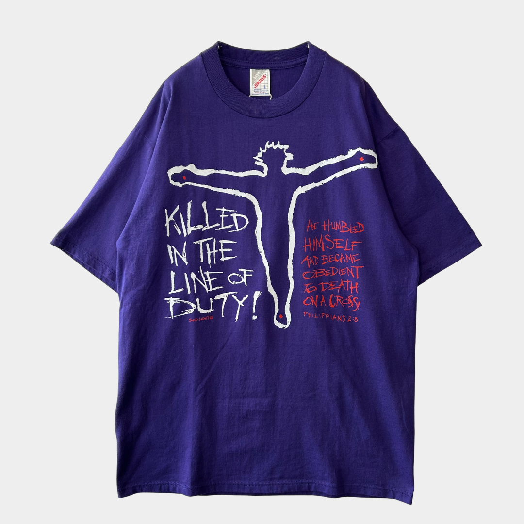 90's JERZEES イエスキリスト メッセージTシャツ 紫(L)/A6422T-SO