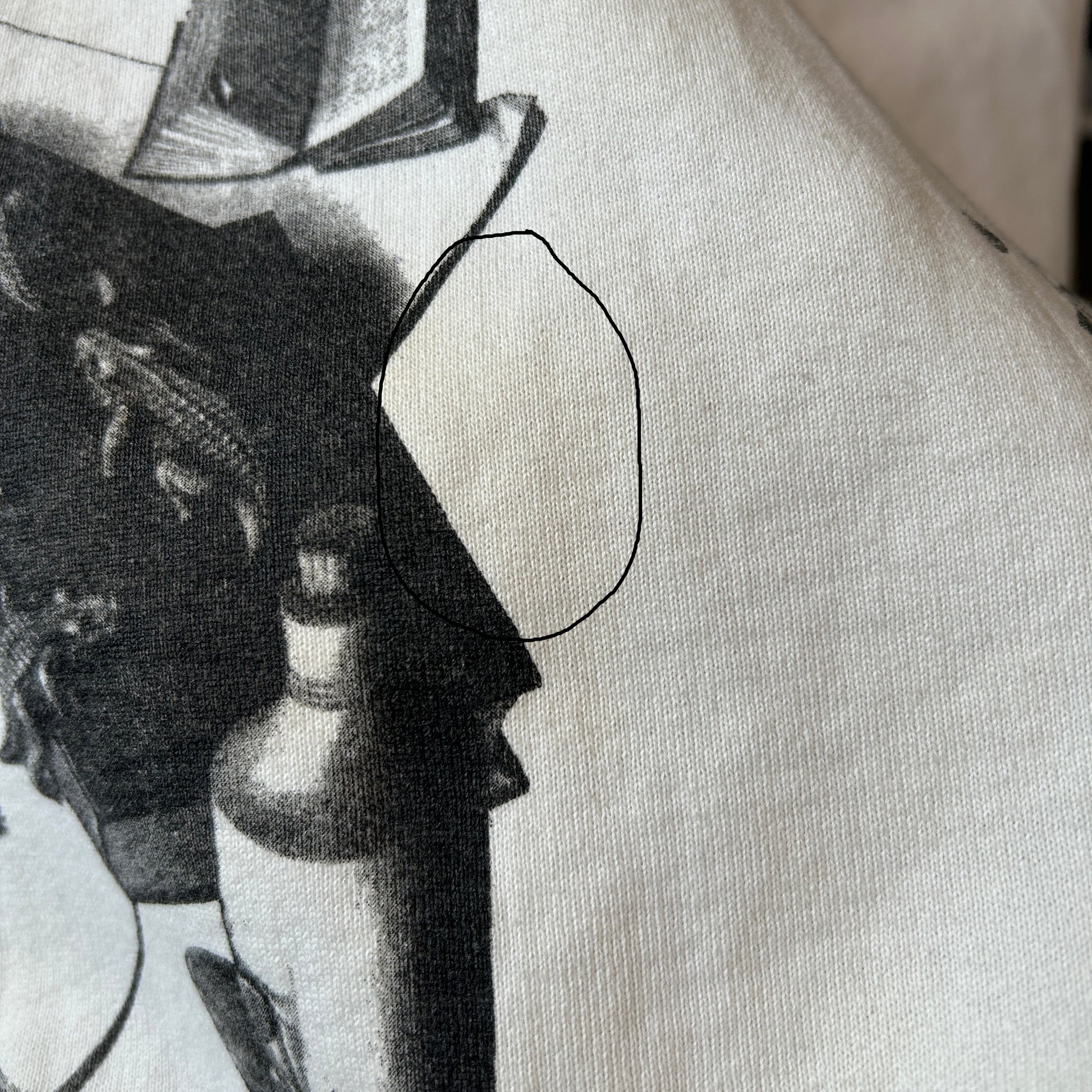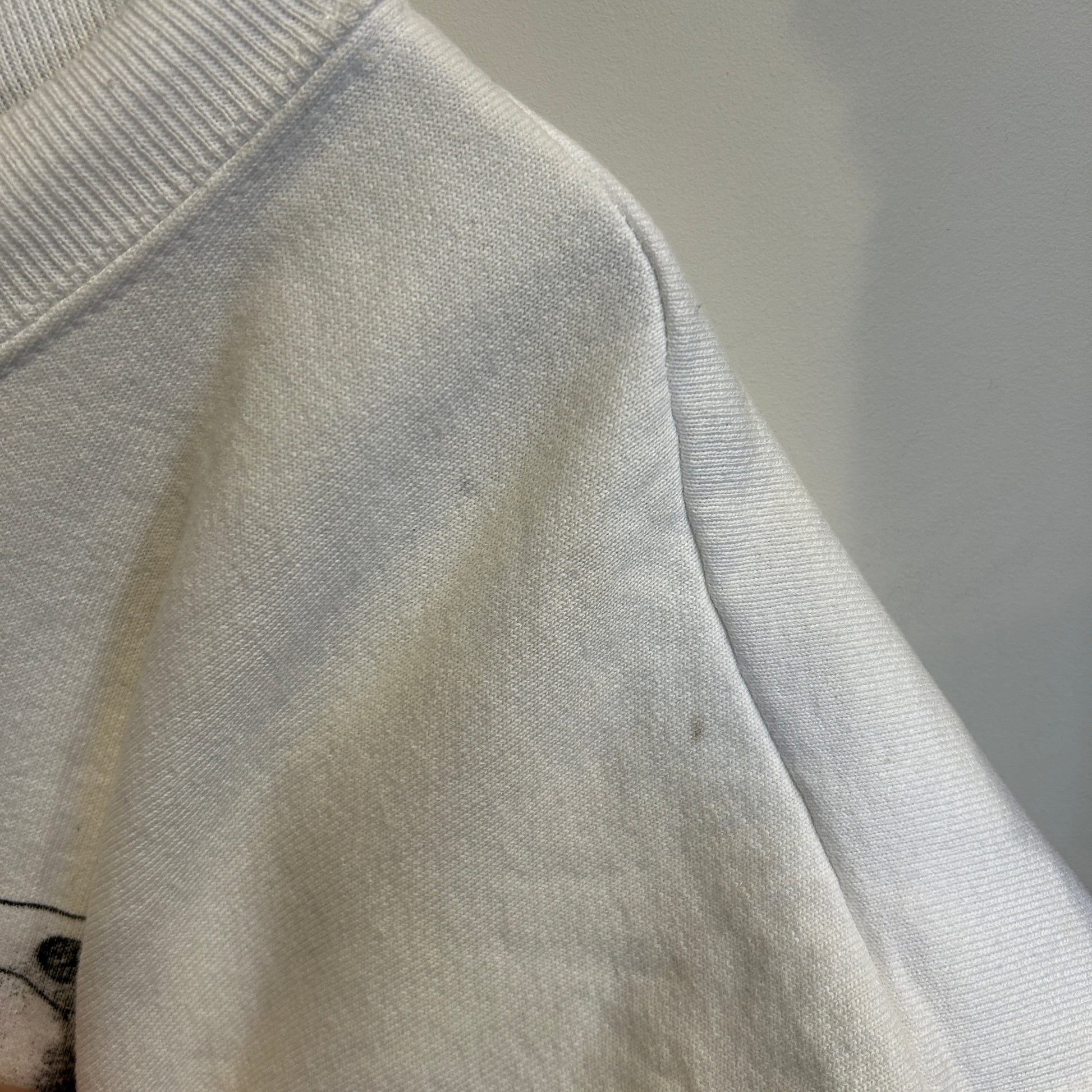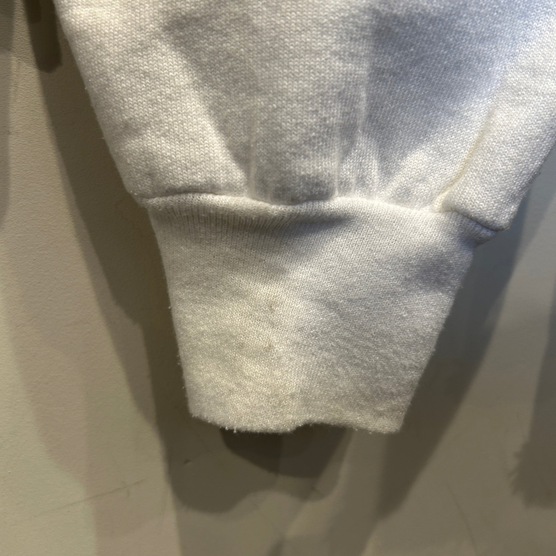 [状態特記]全体的に使用感あり、フロント下部・裾に黄ばみ汚れ有り、左肩に汚れ有り、左袖リブに汚れ有り、