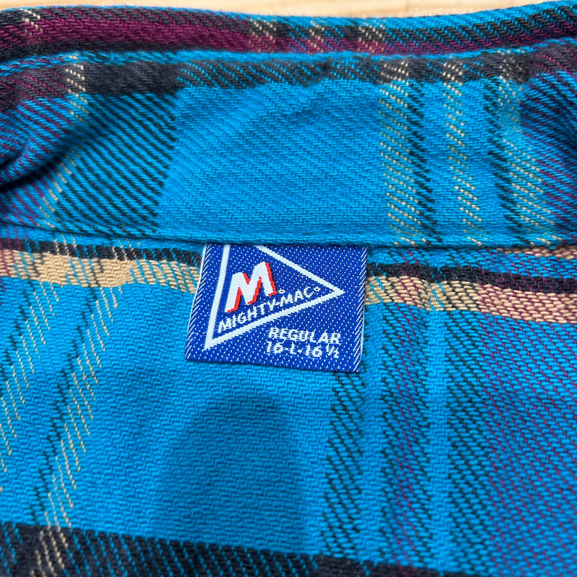90's MIGHTY MAC flannel shirt ネルシャツ ターコイズブルー パープル (M)/A8503SH-SO