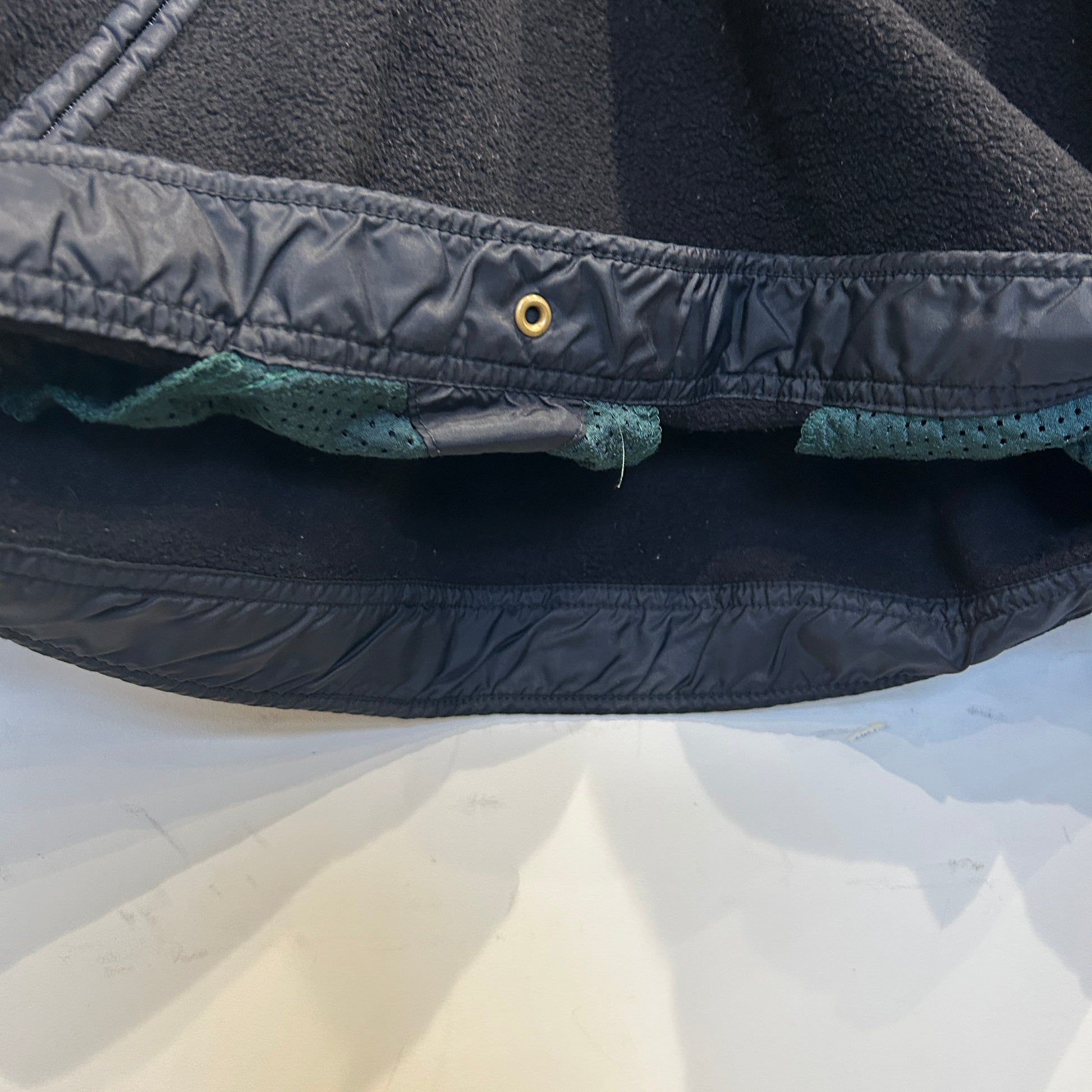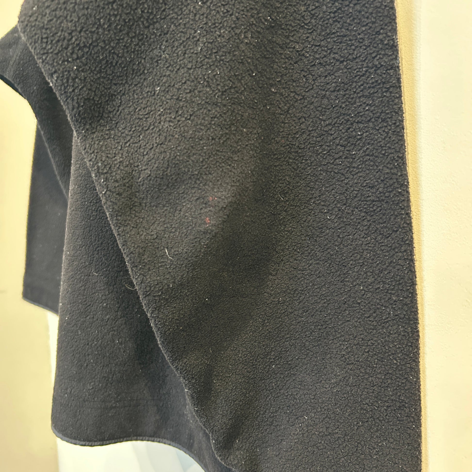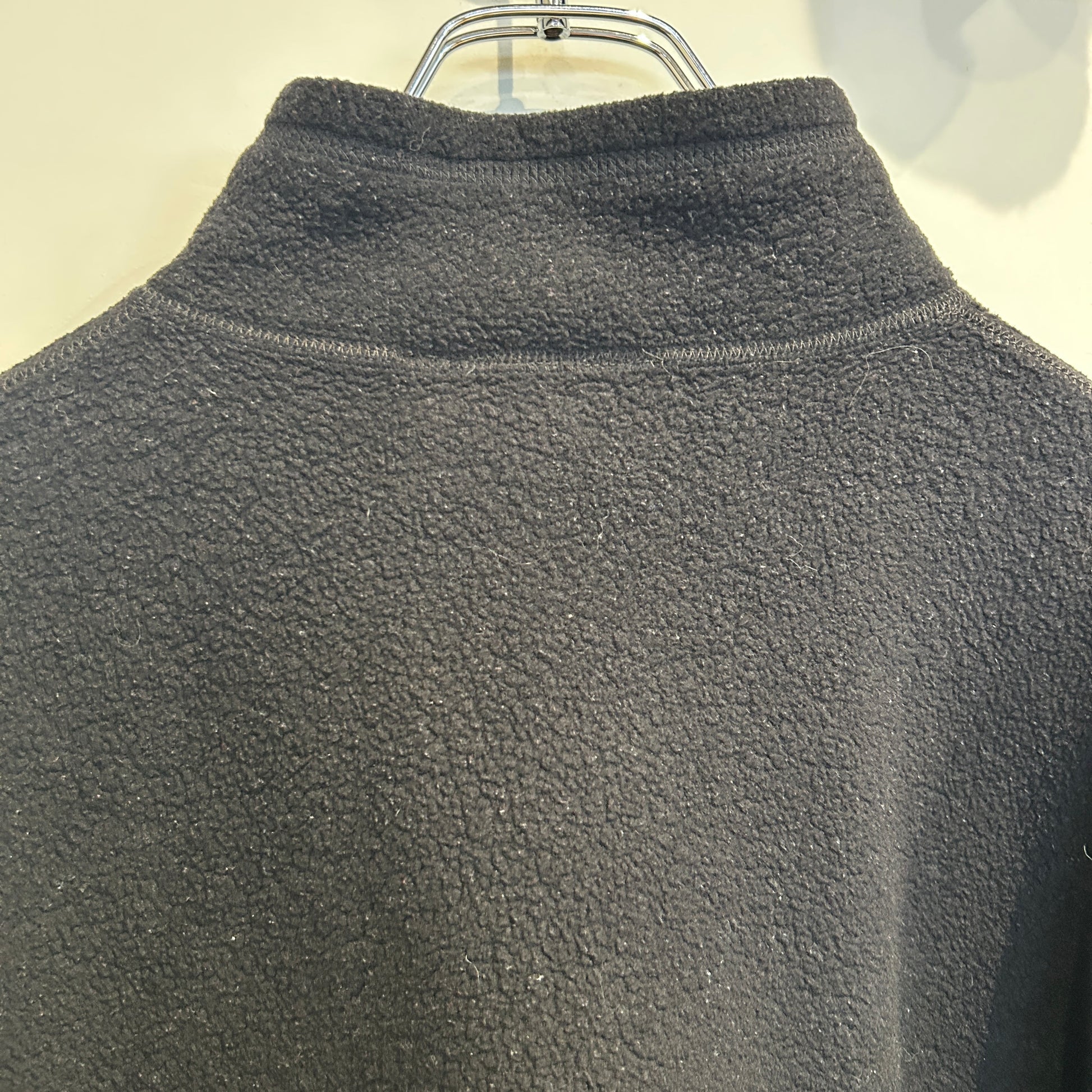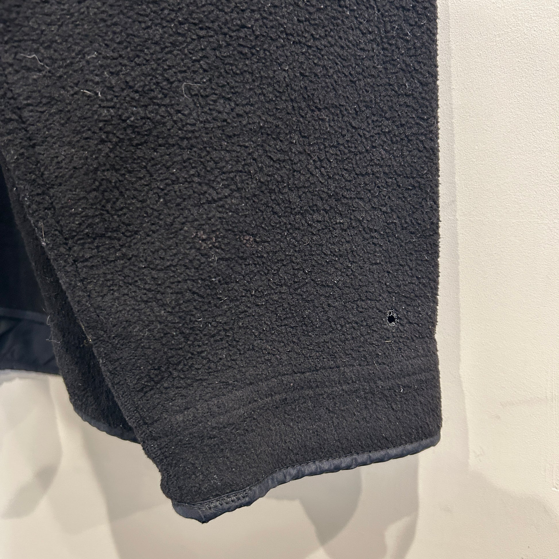 [状態特記]全体的に使用感あり、フロント右側袖先に溶けによる穴と跡あり、ドローコード欠損、各所にフリースの潰れあり、バック右袖肘付近に赤い汚れあり