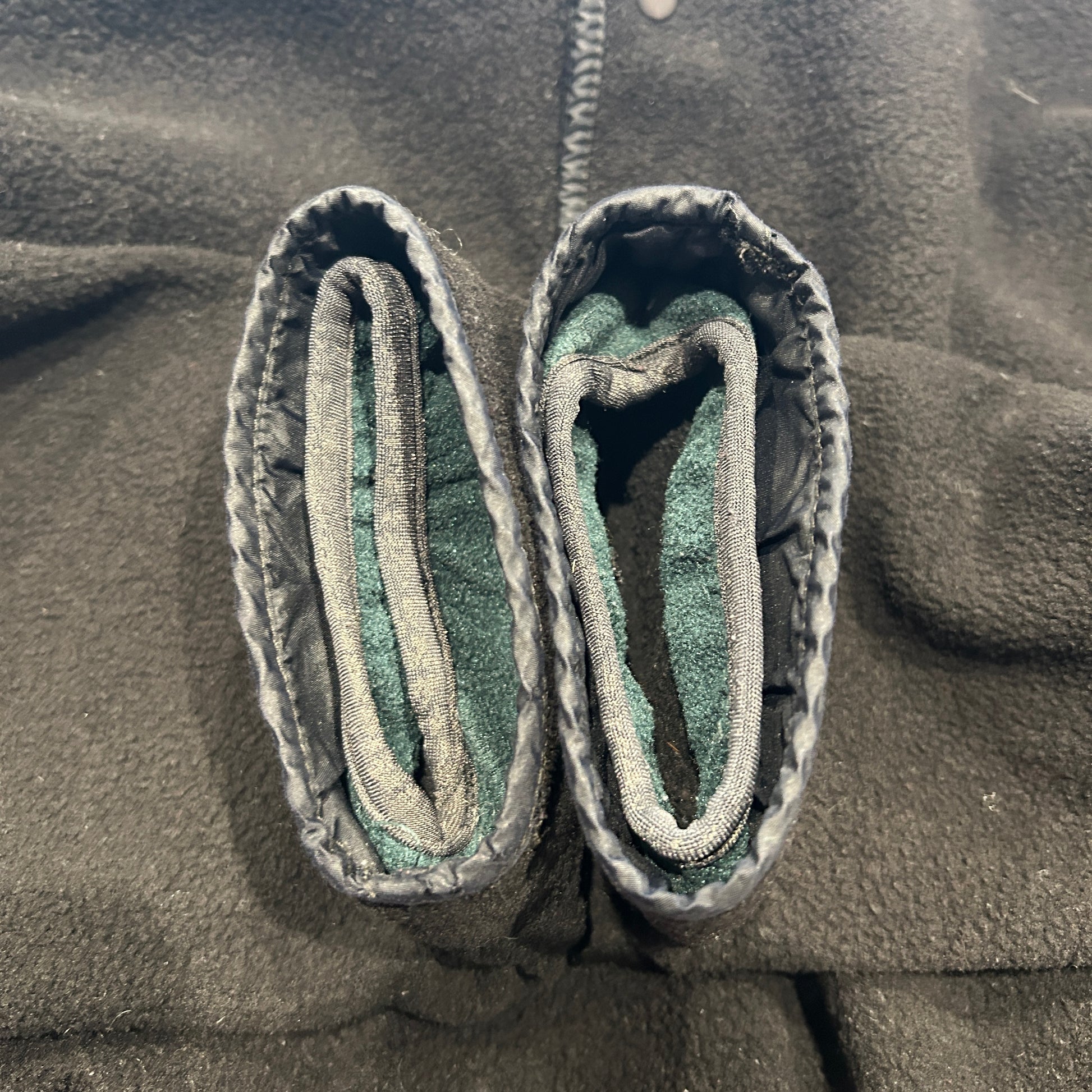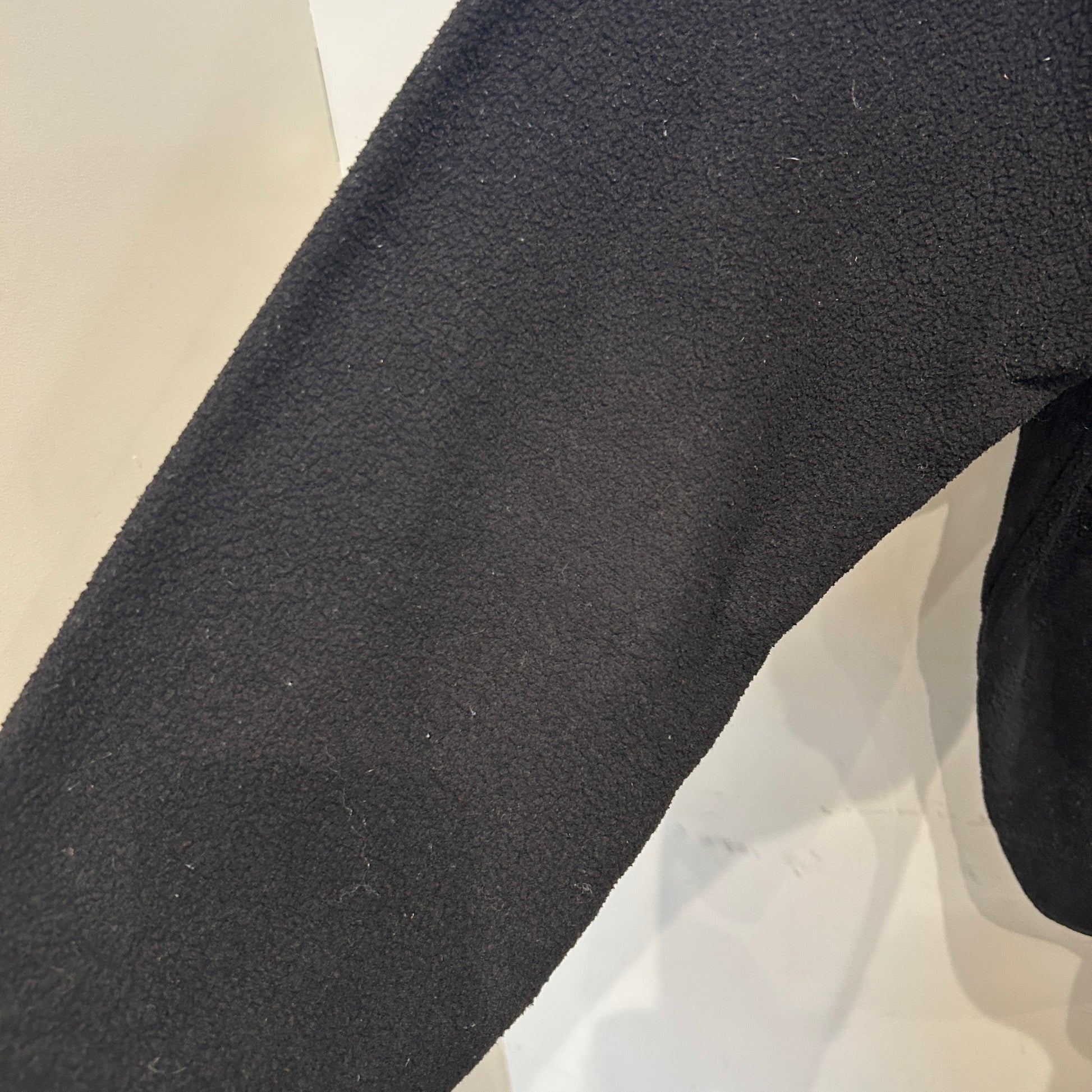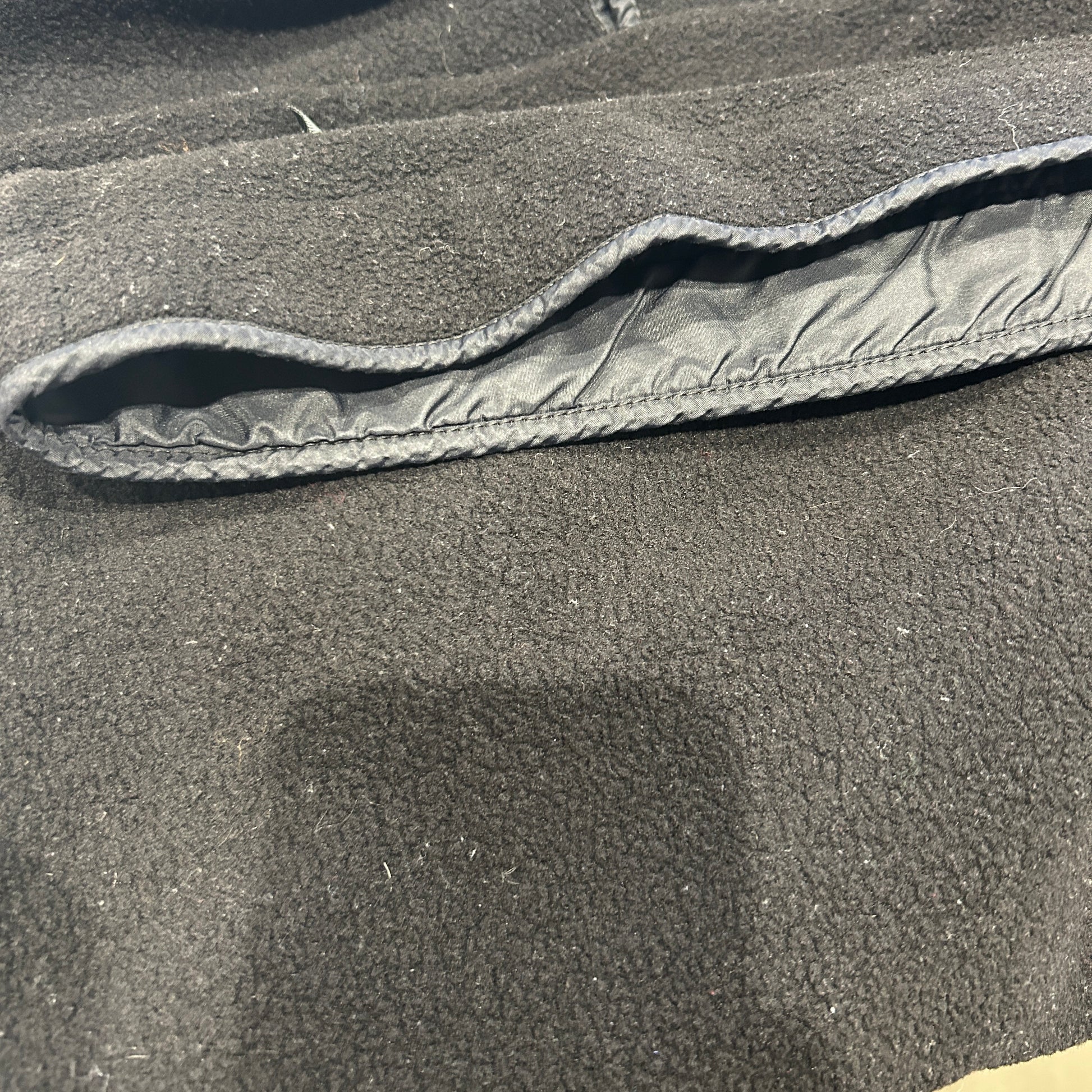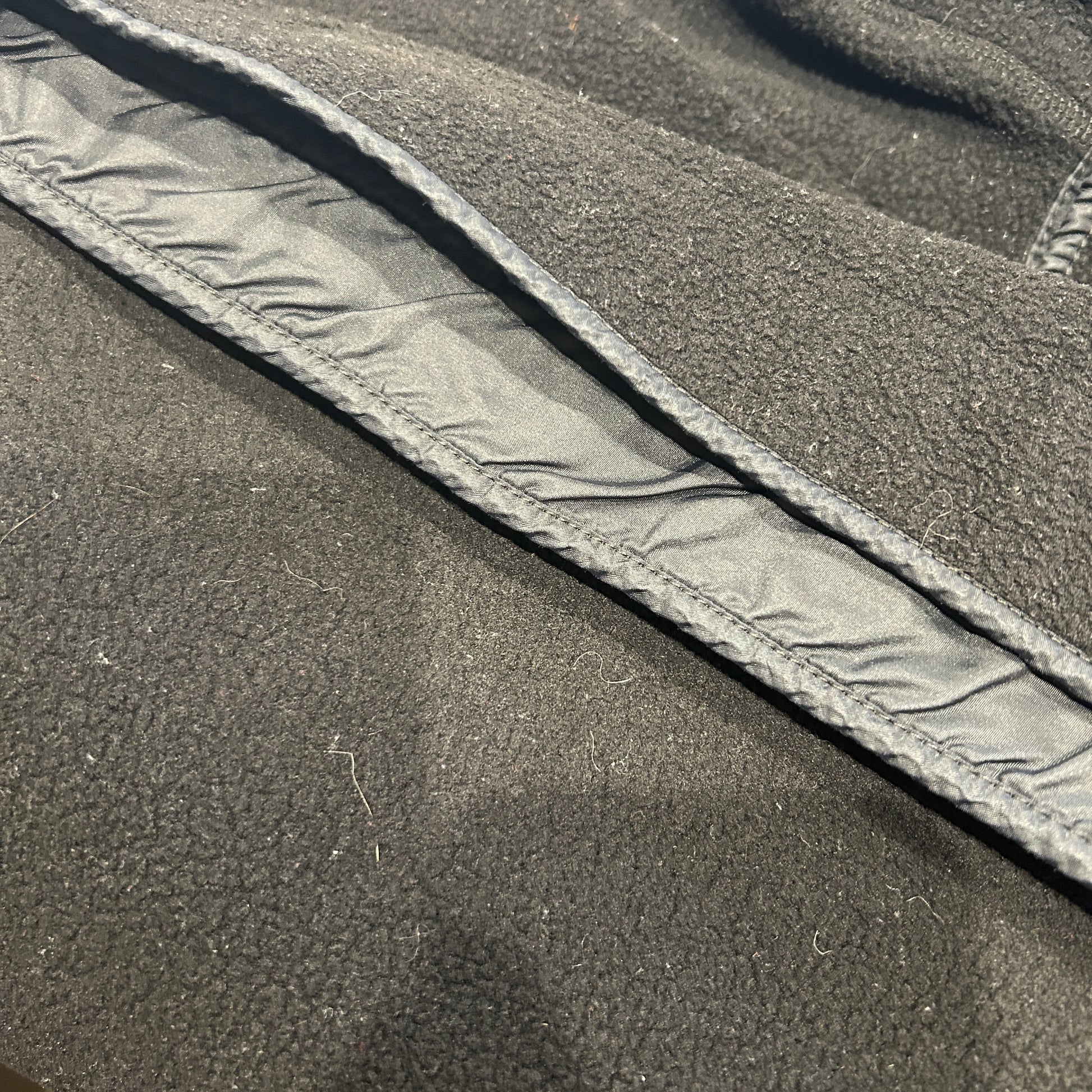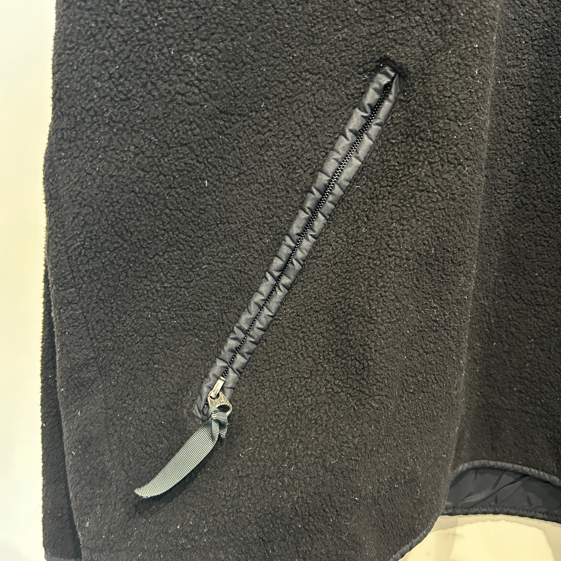 [状態特記]全体的に使用感あり、フロント右側袖先に溶けによる穴と跡あり、ドローコード欠損、各所にフリースの潰れあり、バック右袖肘付近に赤い汚れあり
