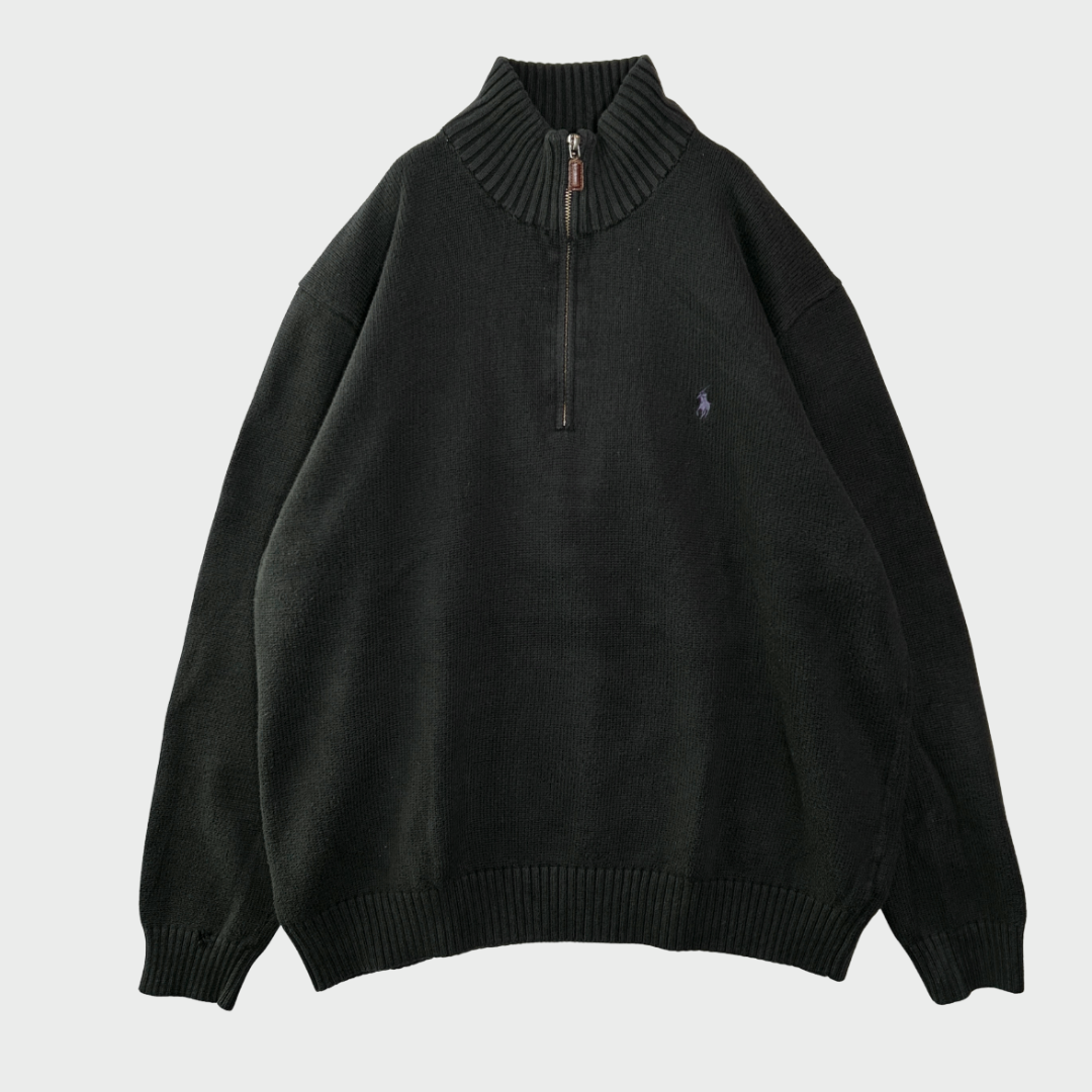 00's RALPH LAUREN ハーフジップ コットンニット 黒 L /A7603K-SO