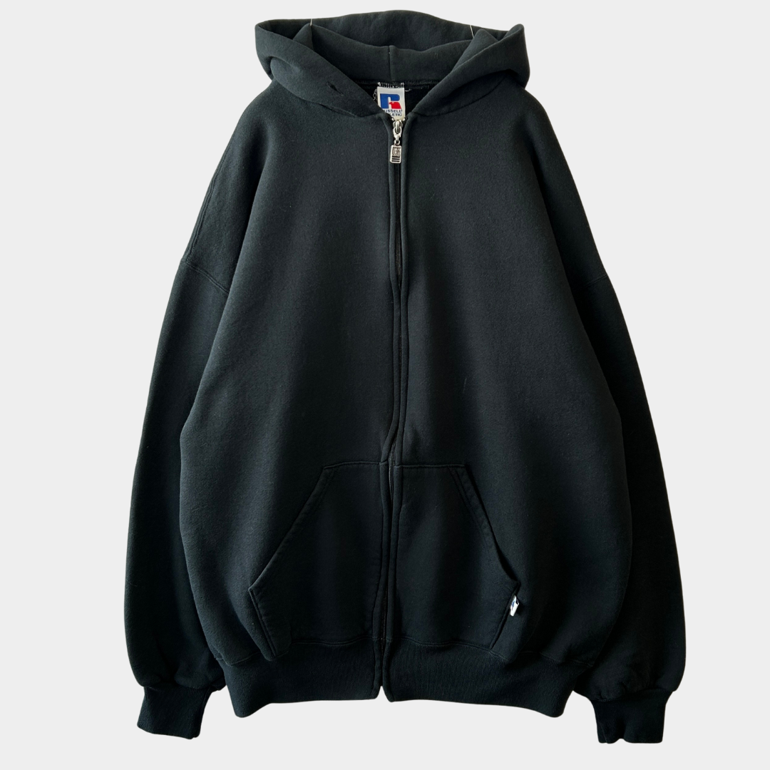 90's Russell ラッセル ジップアップフーディー スウェット パーカー 黒(XL)/A8915S-S0