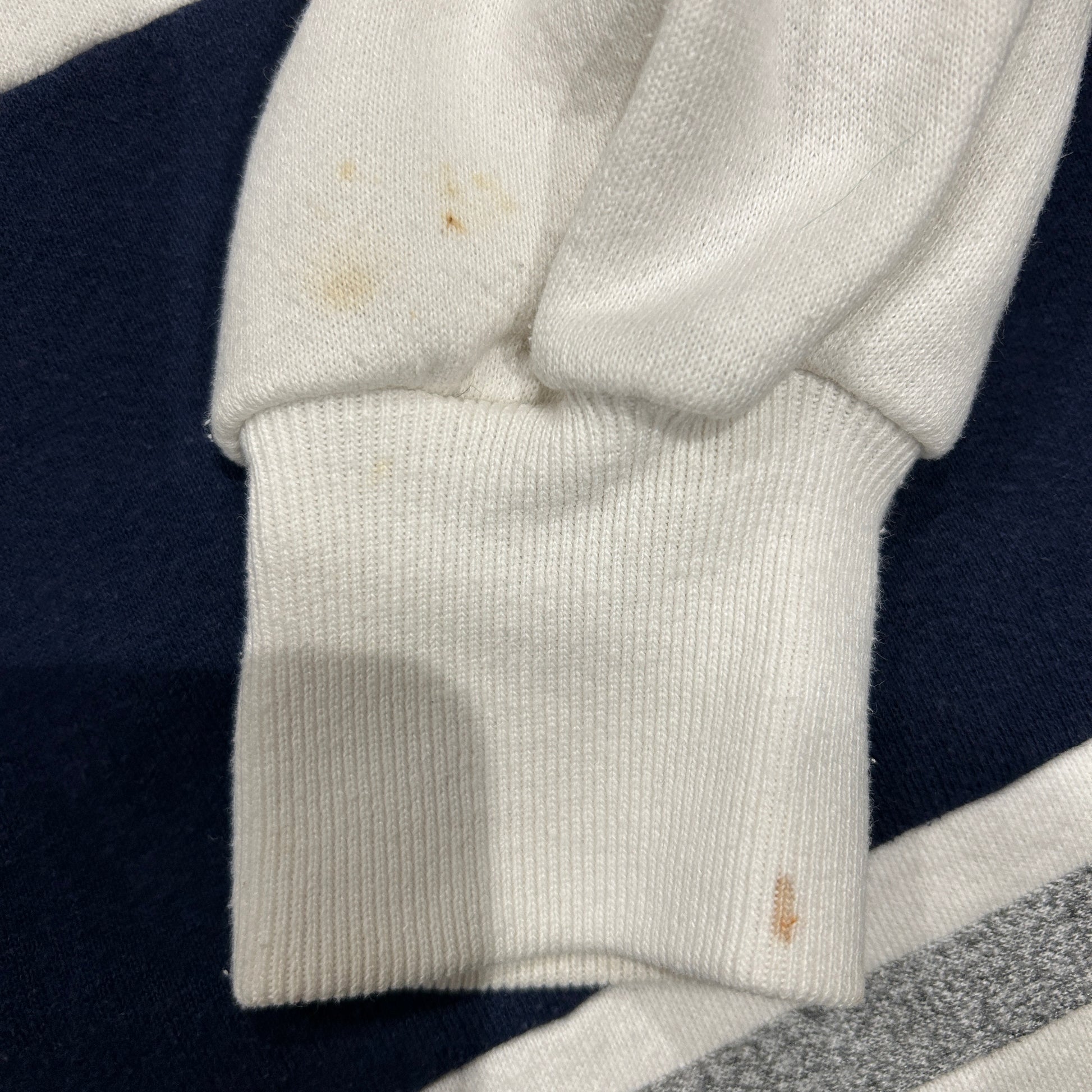 90's SOFEE USNAVY 刺繍ロゴラインスウェット 白紺(L)/B2355S-SO